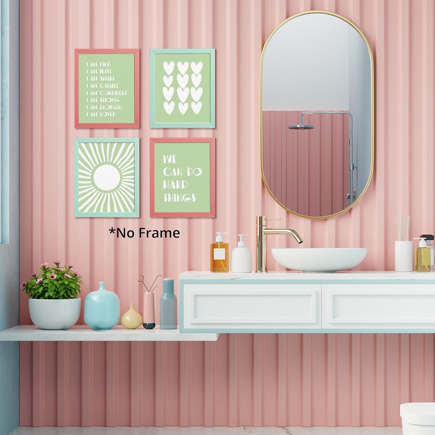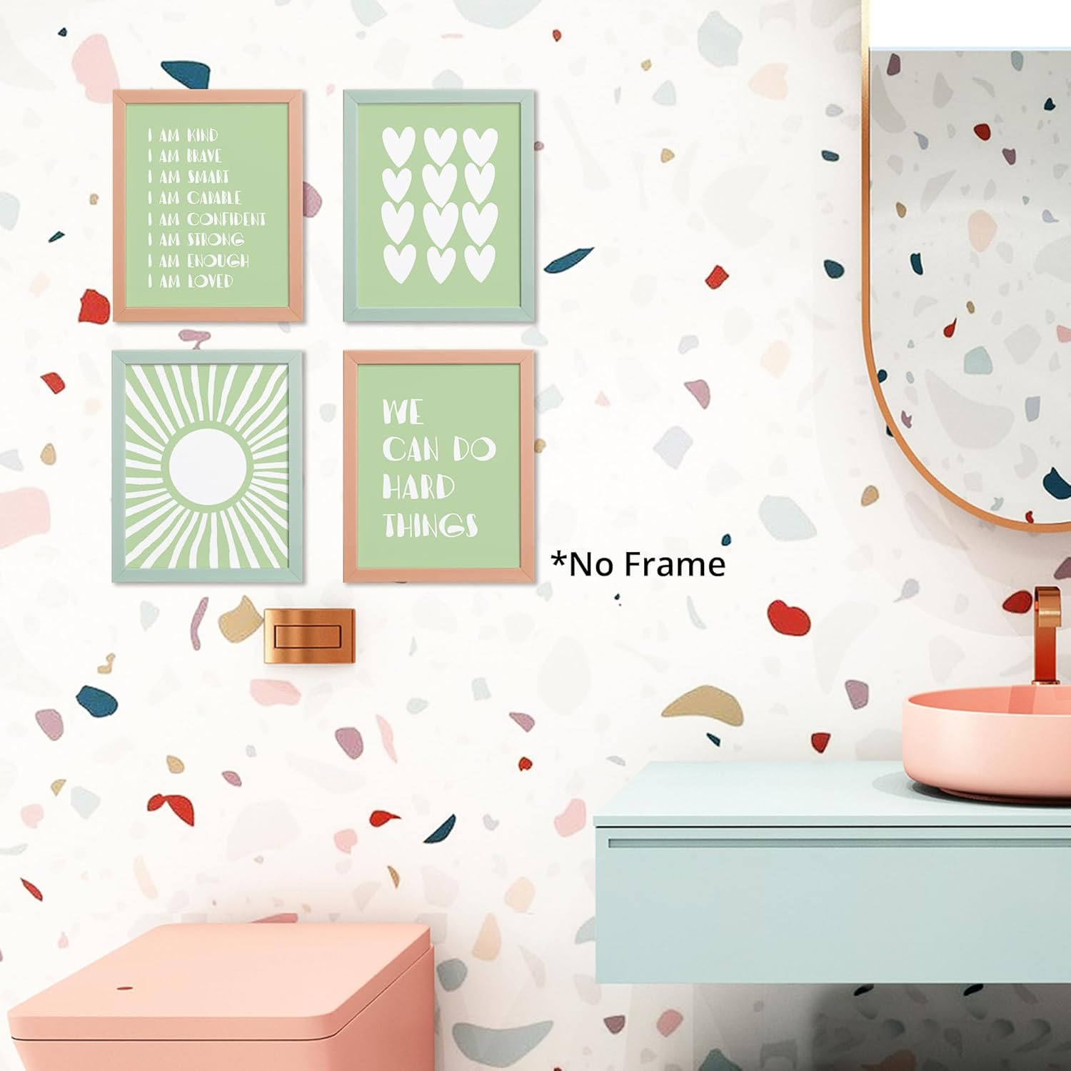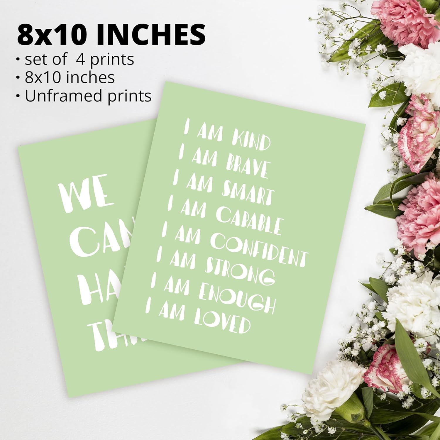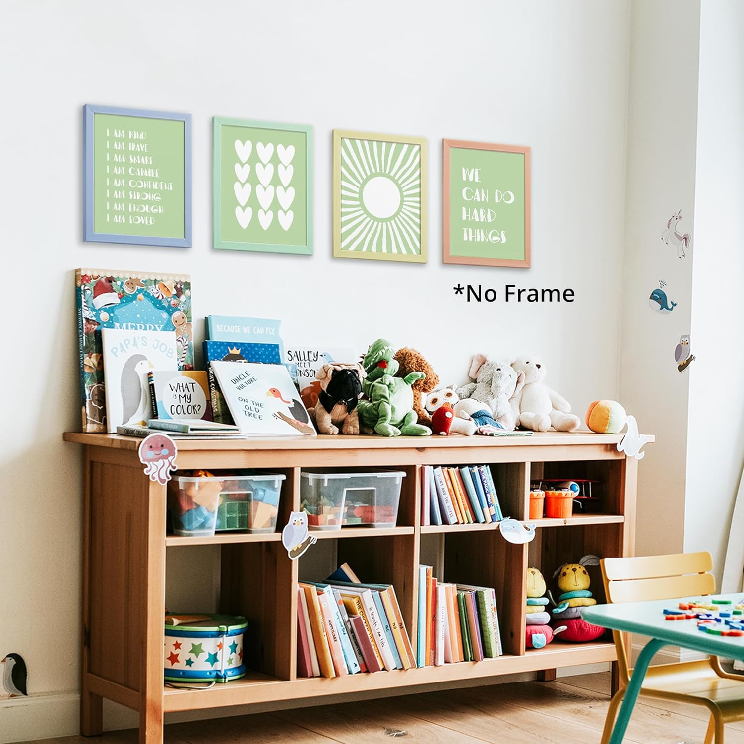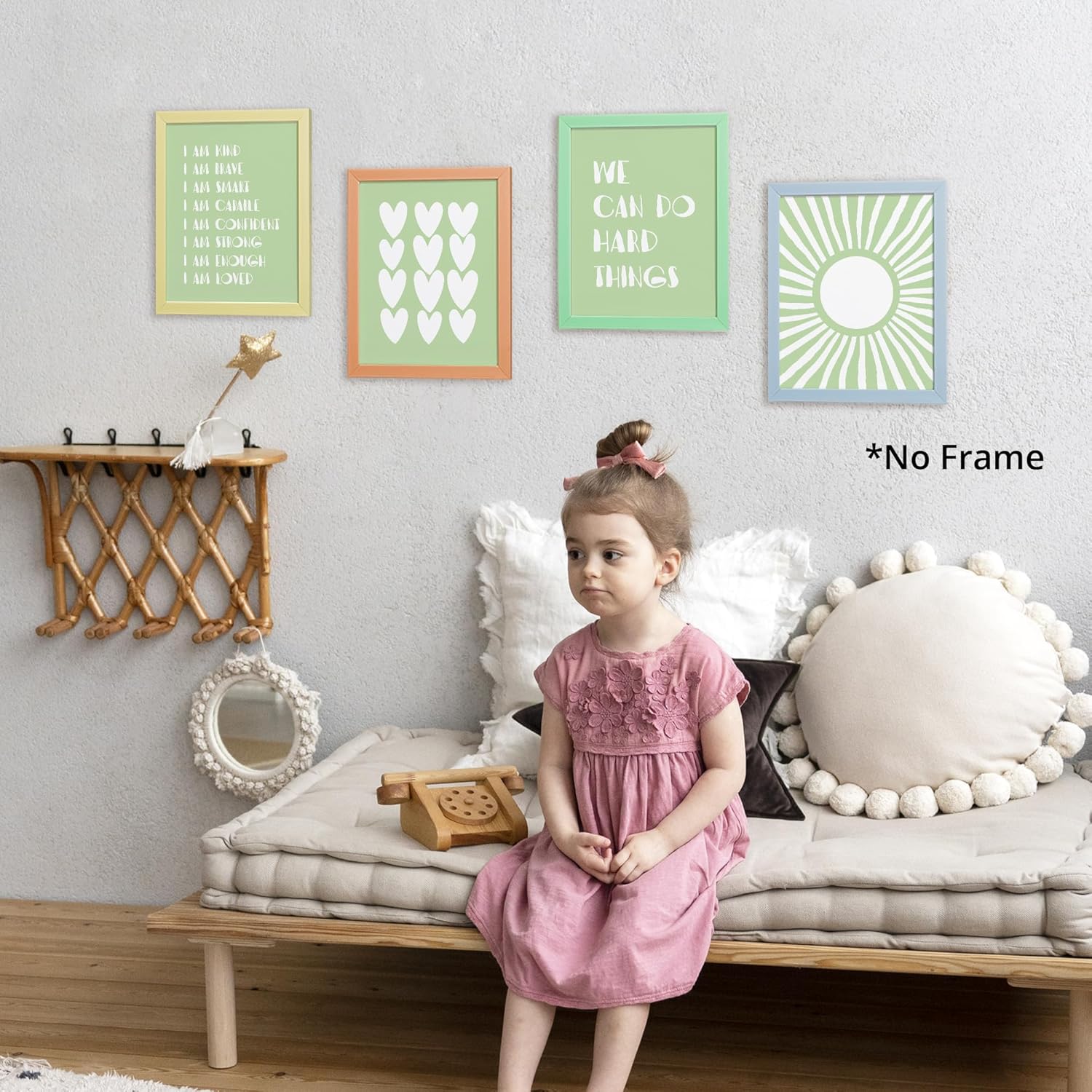I am Kind Brave Smart Affirmations Green Sun Sunshine Hearts Poster Prints for Girls Kids Room Playroom Decor,Girl Nursery Decorations Prints Wall Art Unframed 4pcs 8x10inches,Girls Kids Gifts