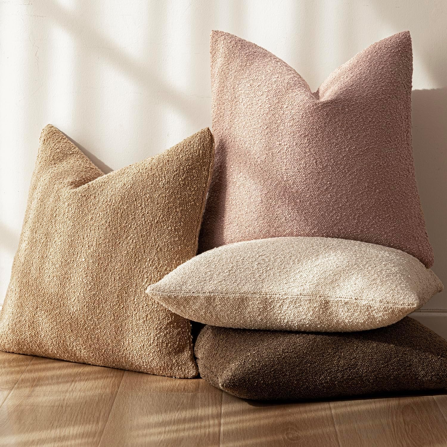 Foindtower Set of 2, Decorative Textured Boucle Throw Pillow Covers Accent Solid Pillow Cases Soft Cozy Couch Cushion Case for Chair Sofa Bedroom Living Room Home Decor 22 x 22 Inch Light Pink