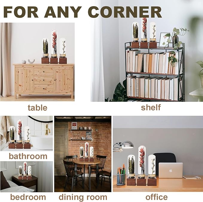 - 🌟【Elegant Design】Combining natural elegance with modern art, these dried plants decor feature solid wood bases and museum-style labels, perfect for any decor style.