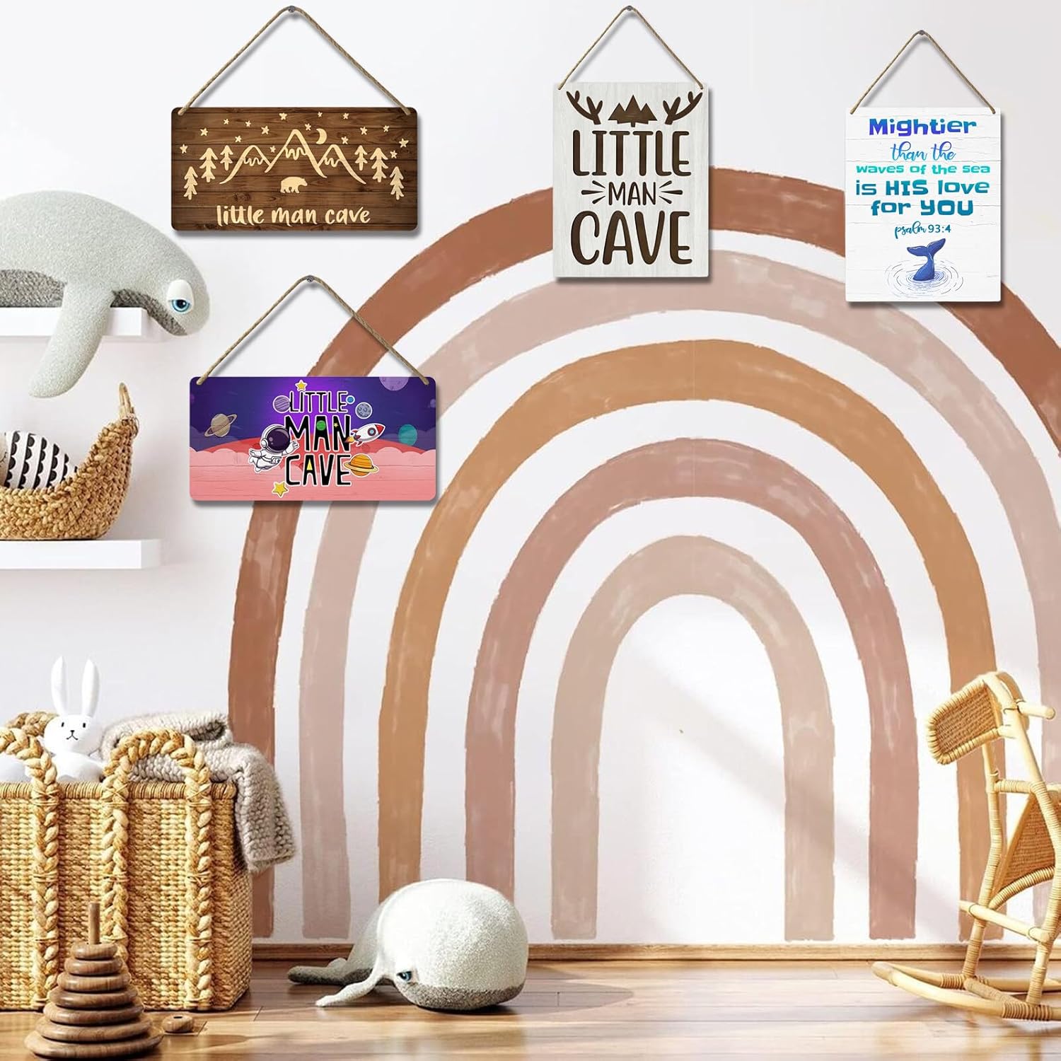Little Man Cave Sign Woodland Nursery Wall Decor for Baby Boys Rustic Bear Forest Animal Wood Signs, Nursery Room Decor for Boys Bedroom Farmhouse Sign Wooden Wall Art 12x6 Inch