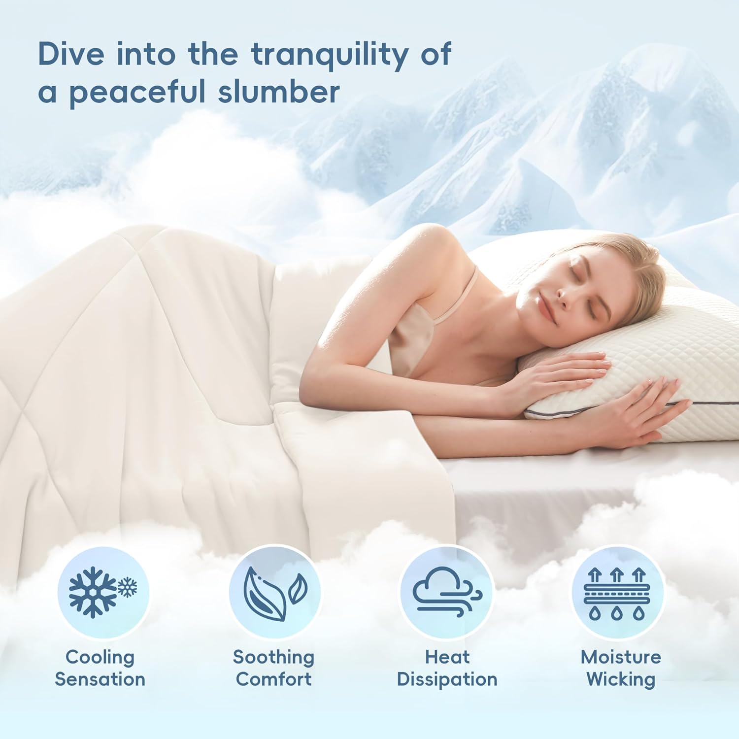 - Summertime Comfort: Wrap yourself in cloud-like softness and optimal cooling comfort with our cooling comforter tailored for hot sleepers this summer, its dual-side cool touch fabric excels in heat dissipation and sweat absorption, allows more air flow and gently caresses you skin, making it easy for enjoying a peaceful night’s sleep