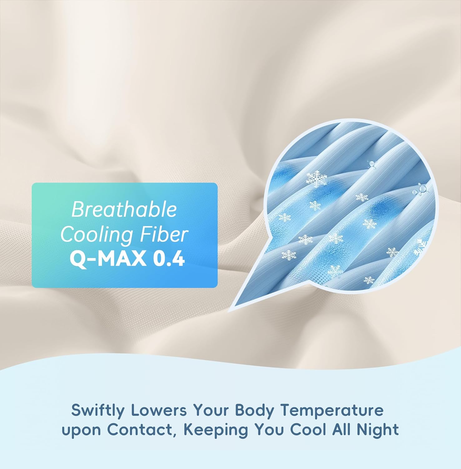 - Balanced Coolness: The secret behind our cooling comforter’s just right cooling sensation lies in its thoughtful double-sided cooling touch design and its embedded cooling fibers, which lowers your body temperature swiftly upon contact and releases heat significantly. Our cooling comforter has a Q-MAX rating of around 0.4, higher than the standard 0.15, keeping you refreshingly cool and dry all night long