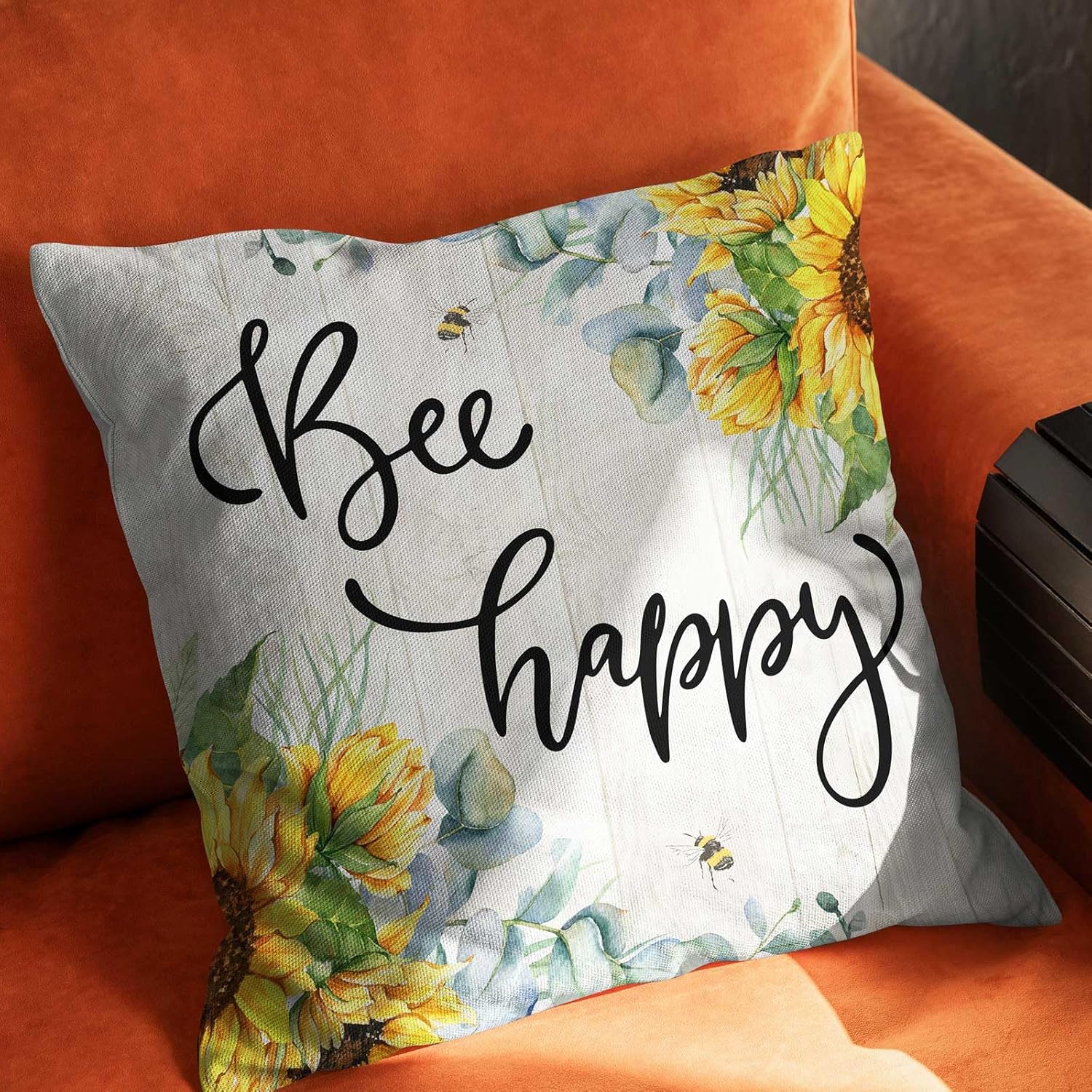 - Vivid Color :The color of this Bee Happy Sunflower Throw Pillow Cover is bright and vibrant, and the dye has been processed with sunshine fade resistant.