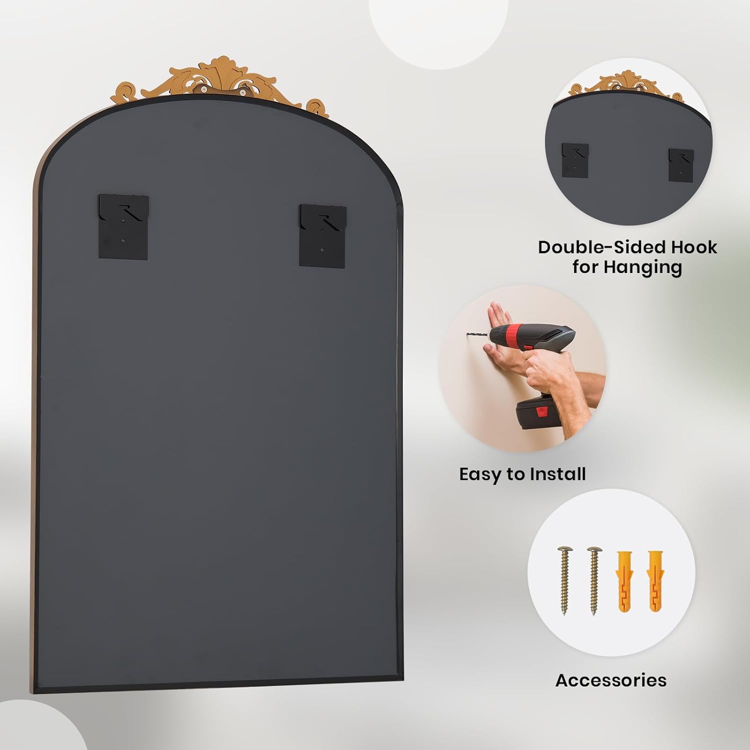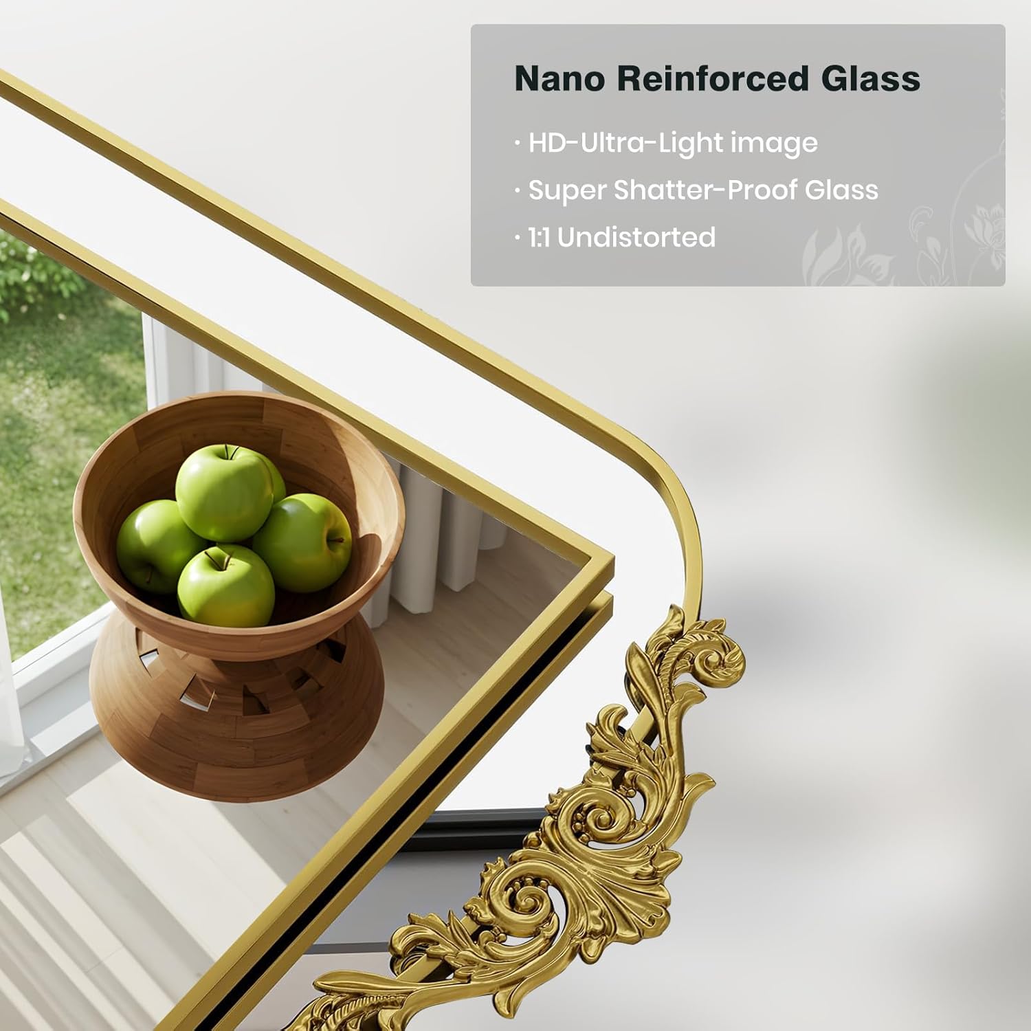 - Gold Aluminum Alloy Framed Floor Mirror with Vintage Ornate Carved Applique: The accent wall mirror features a retro style that can complement any type of room decor, adding a touch of elegance to your room. It will be a great wall decor art piece for your home