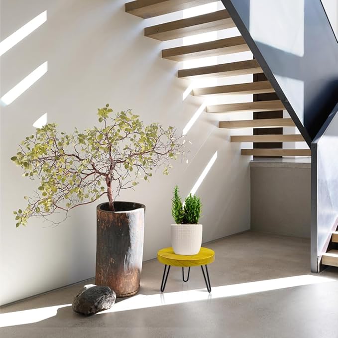 - 【Material】The top plate is made of natural wood material, you can clearly see the beautiful texture of the wood, it will combine your plants with the most primitive decorations and provide you a comfortable and natural feeling. The legs of the flower pot stand are made of METAL are more stonger than traditional wood legs. Our wooden stool display stand are strong and sturdy and can be used for a long time.