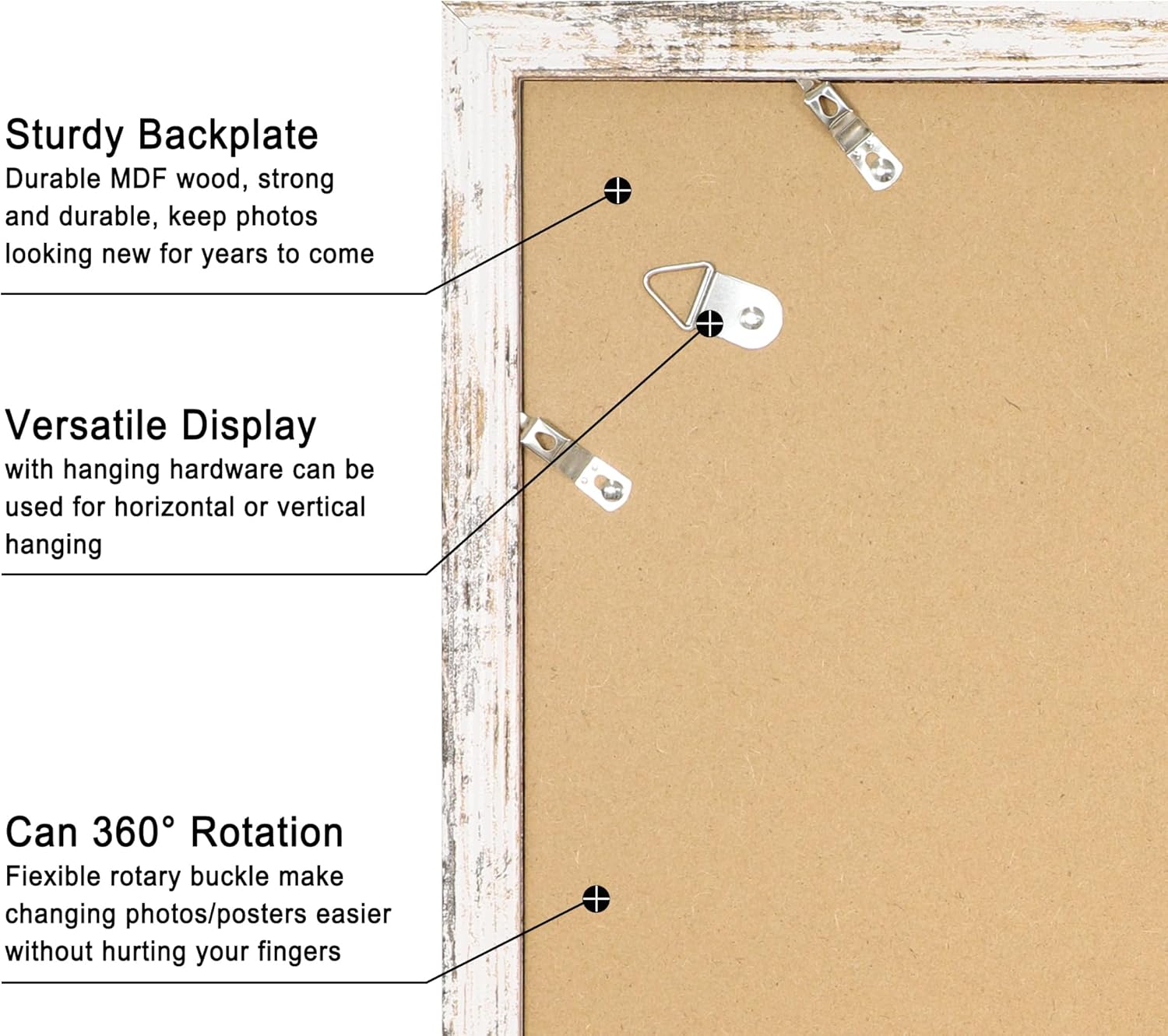 - Material: These picture frame set made of MDF are very durable and the Plexiglas with high clarity, protecting your photos from dust, moisture and scratches. Exquisitely hardware accessories on the backboard, rust-resistant and quality.