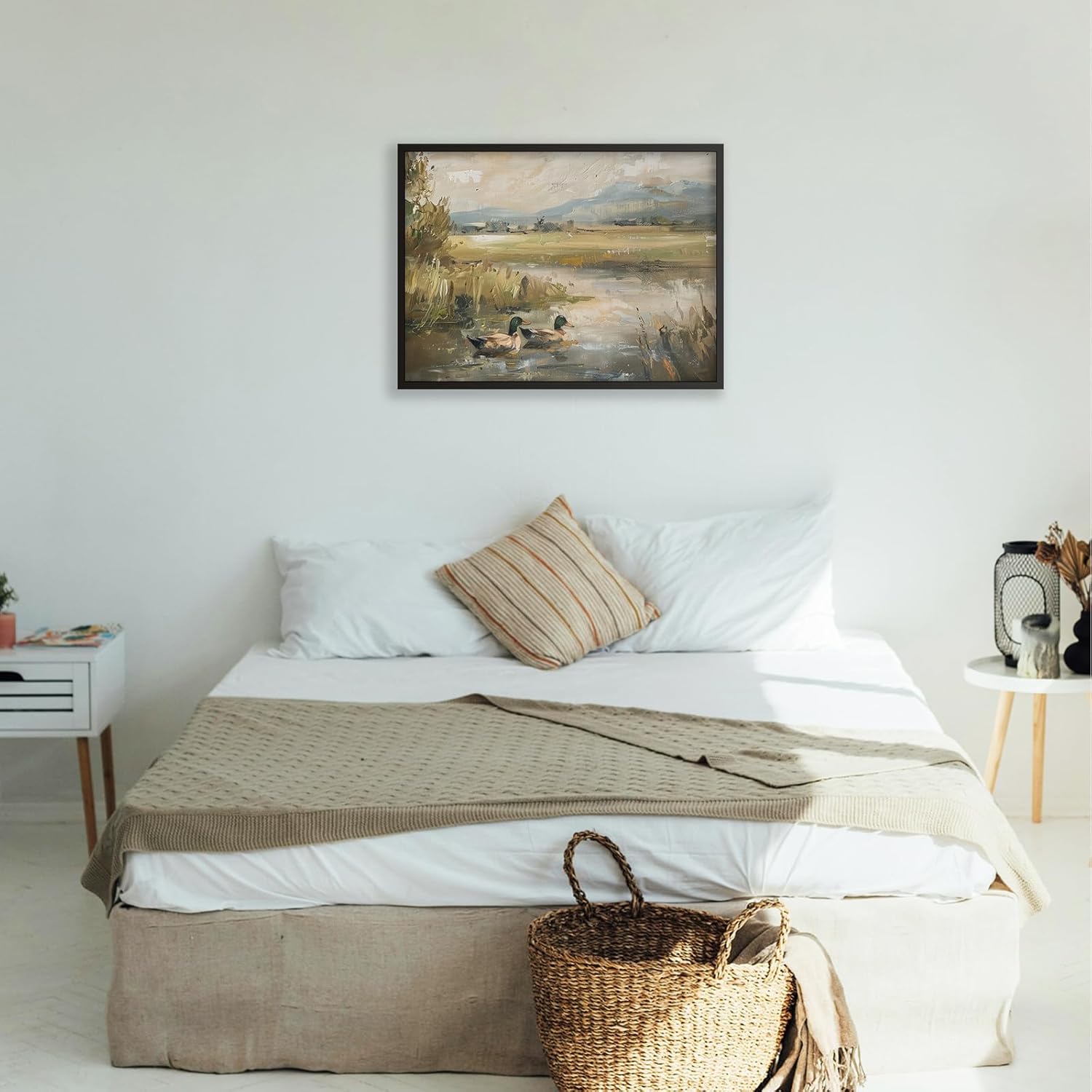 - Vintage Posters:Animal wall art size is 16x24 inch.Duck poster is wrapped and stretched in a wood frame and set in a black aluminum frame.The black frame also adds some modernity and style to the poster