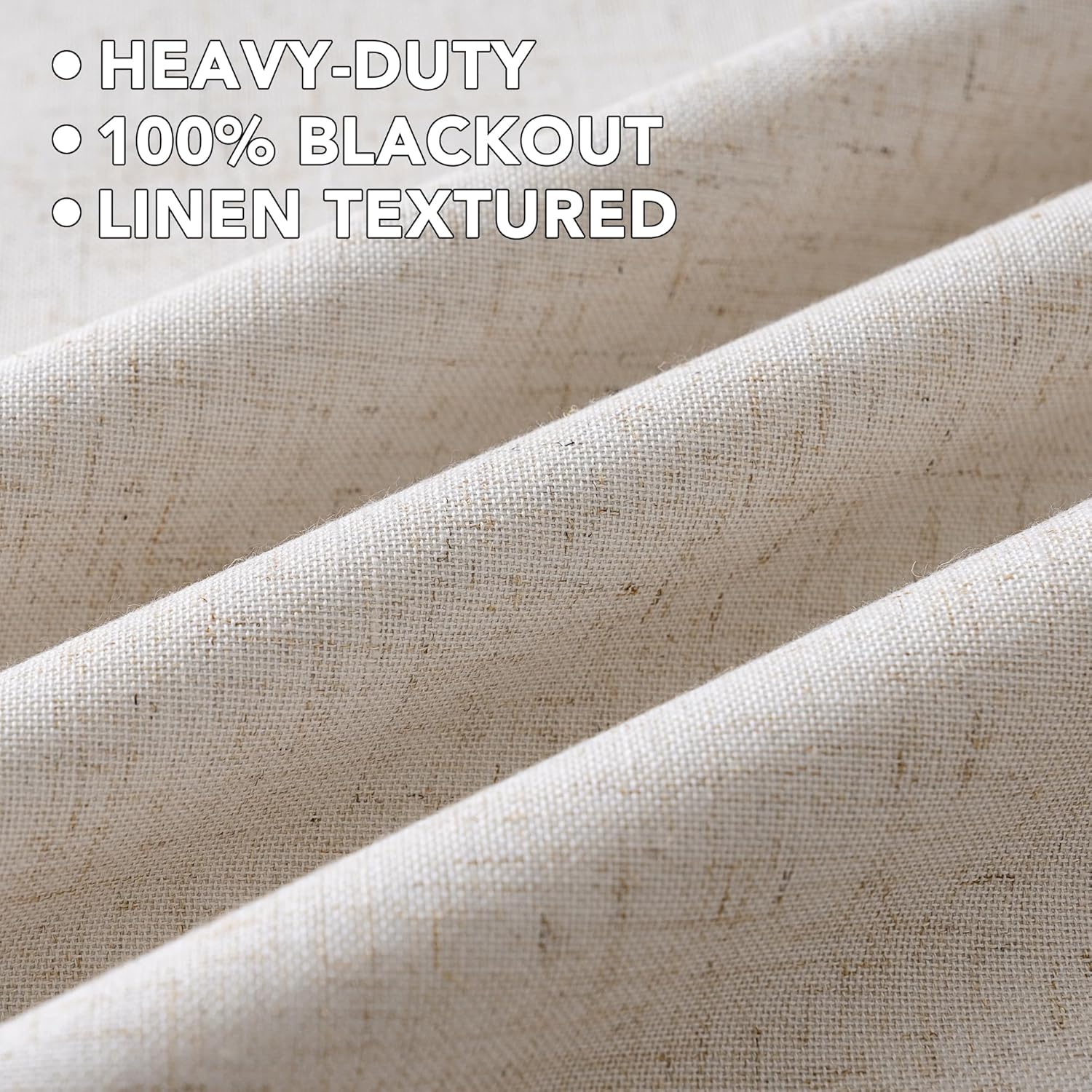 - INNOVATED MATERIAL: These casual linen draperies are crafted from rich linen fabric, added with 100% blackout lining, draped and soft, block the wind and reduce the noise. The nature linen composition, which gives it a slightly brownish tone. If you want to buy solid color curtains, we recommend you to choose our other products