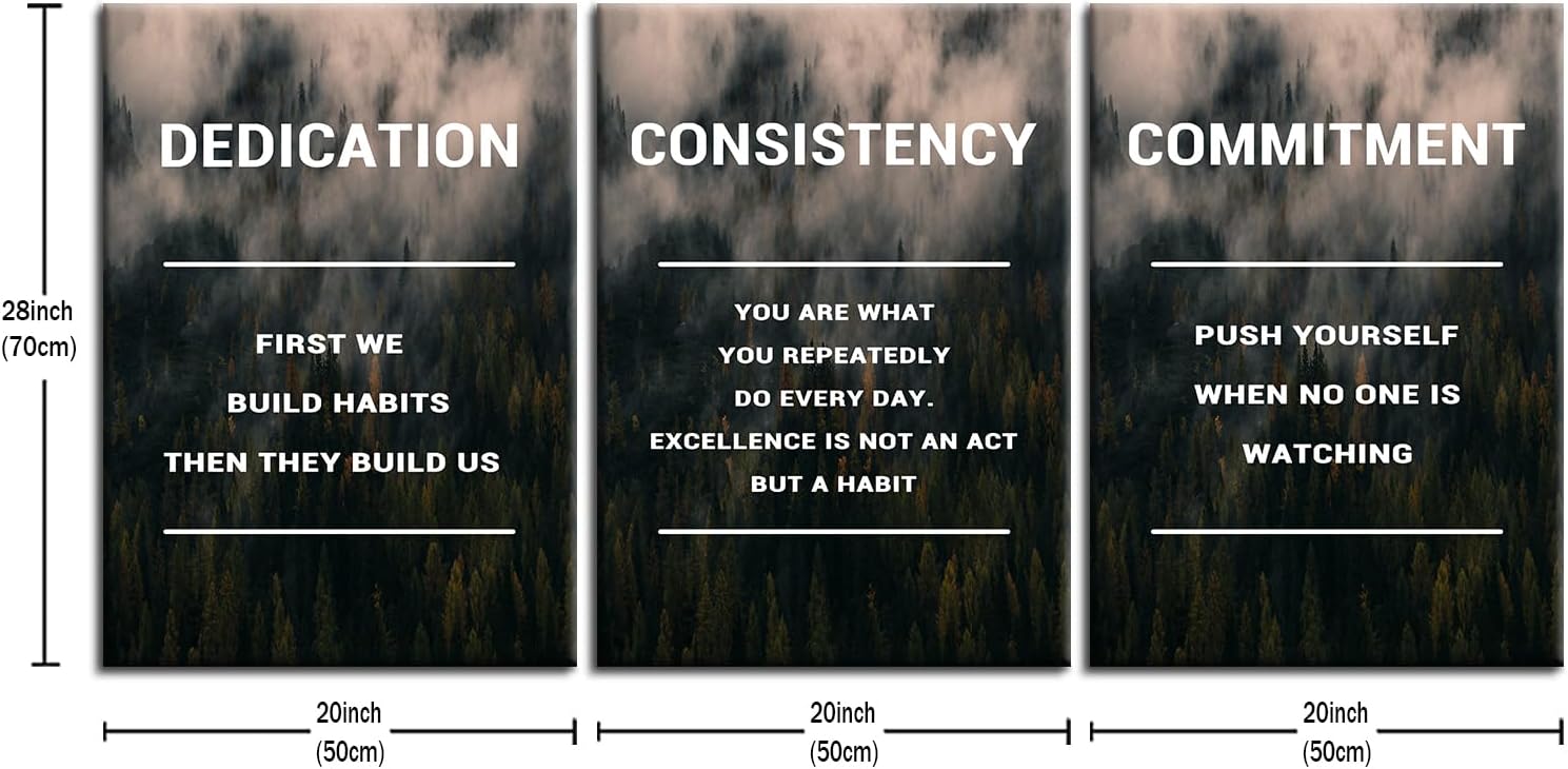 Inspirational Poster Wall Decor Dedication Consistency Commitment Motivational Wall Art Positive Signs Print on Canvas Picture Painting for Living Room Workplace Artwork Ready to Hang [60''Wx28''H]