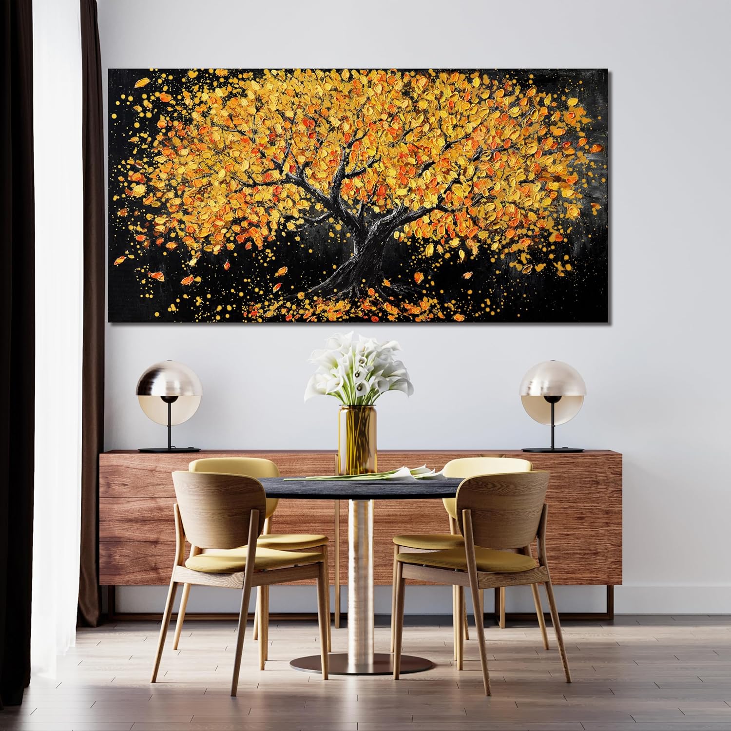 Dimpaga Canvas Wall Art Decor Large Wall Art for Living Room Artwork for Walls Black and Gold Wall Art Decor Tree of Life Wall Art Prints Canvas Art Wall Decor Home Office Wall Decor 24"X48"