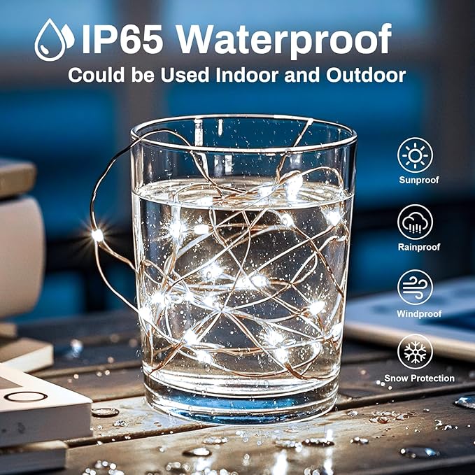 - Convenient string organization: In order to prevent the wires from getting tangled and difficult to untie, anti winding coils are exclusively designed for easy storage, organization, and recycling after use; and designed with IP65 waterproof, the copper wire part can be put into the water to achieve a special atmosphere effect (except the battery box)