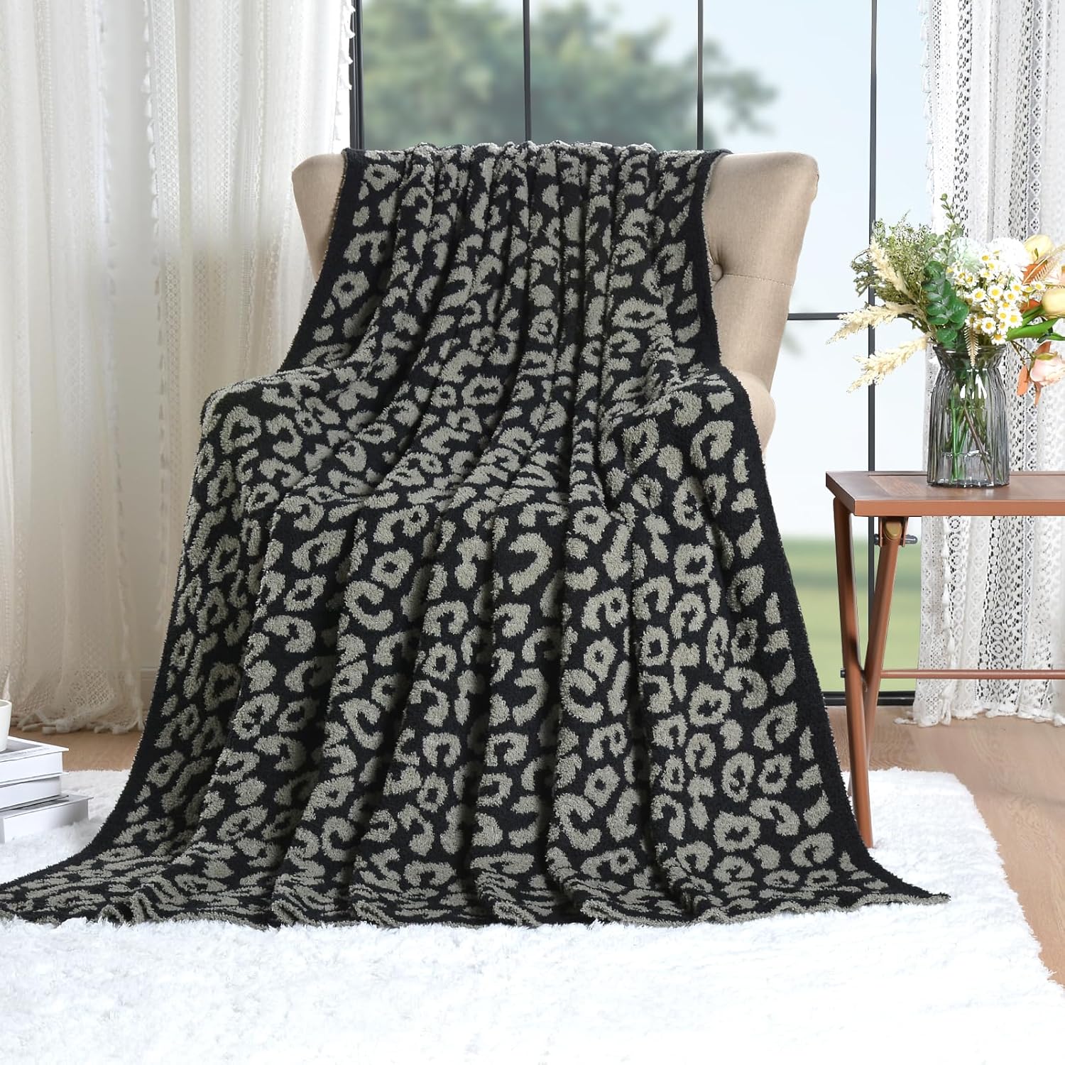Leopard Knit Throw Soft Cozy Lightweight Blanket for Bed Sofa Couch Breathable Warm Cheetah Blanket Leopard Black 60x80 Inches