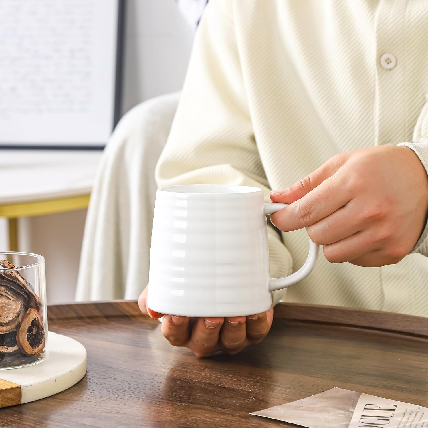 Large Ceramic Coffee Mugs, Handmade Pottery Mug, Tea Cups with Handle for Office and Home, 16 Ounces, Dishwasher and Microwave Safe (White)