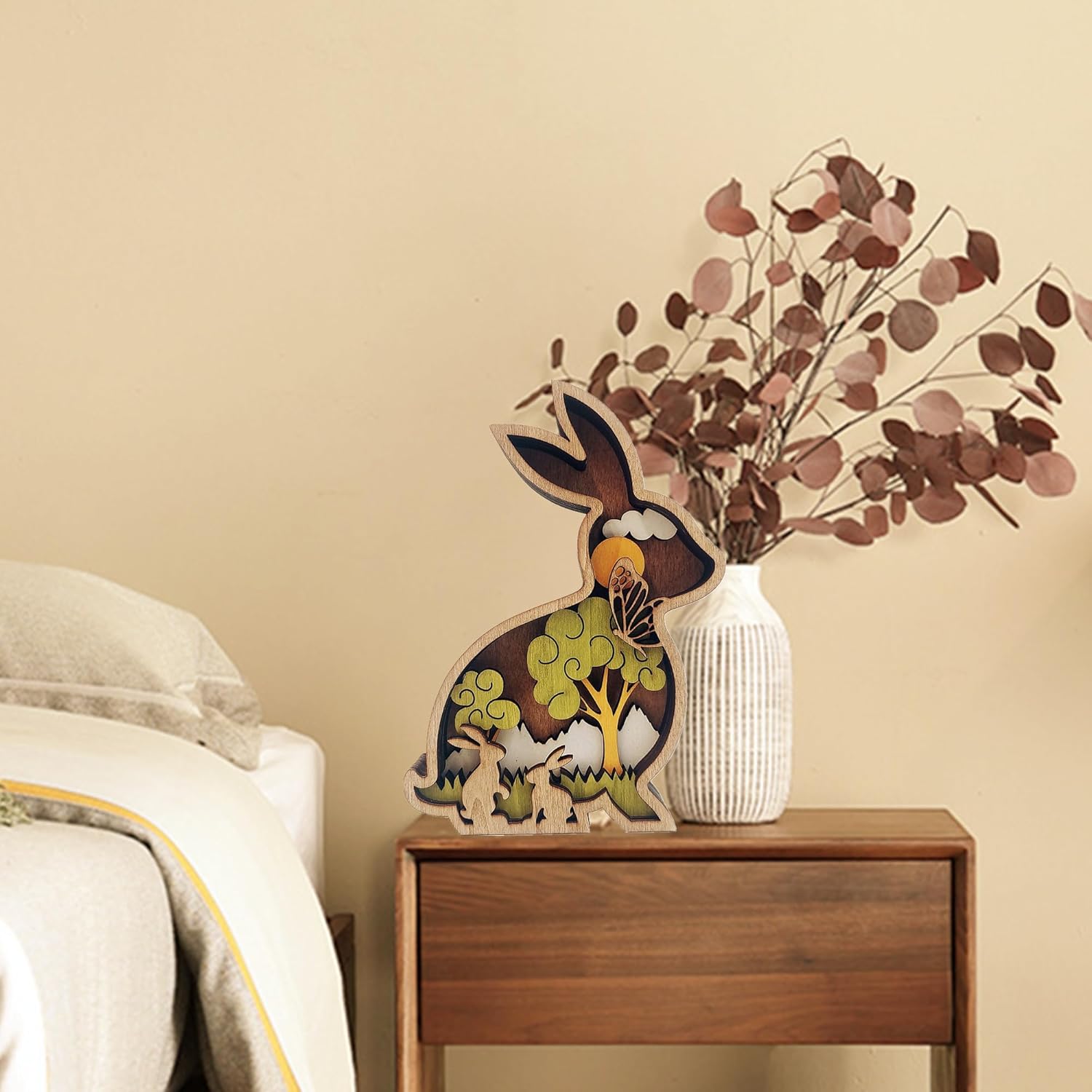 Forest AnimalDesk Art Decor Wooden Farmhouse Table Decoration, Cabin Decor Nursery Decor Mountain Decor for Bedroom Living Room (Rabbit)