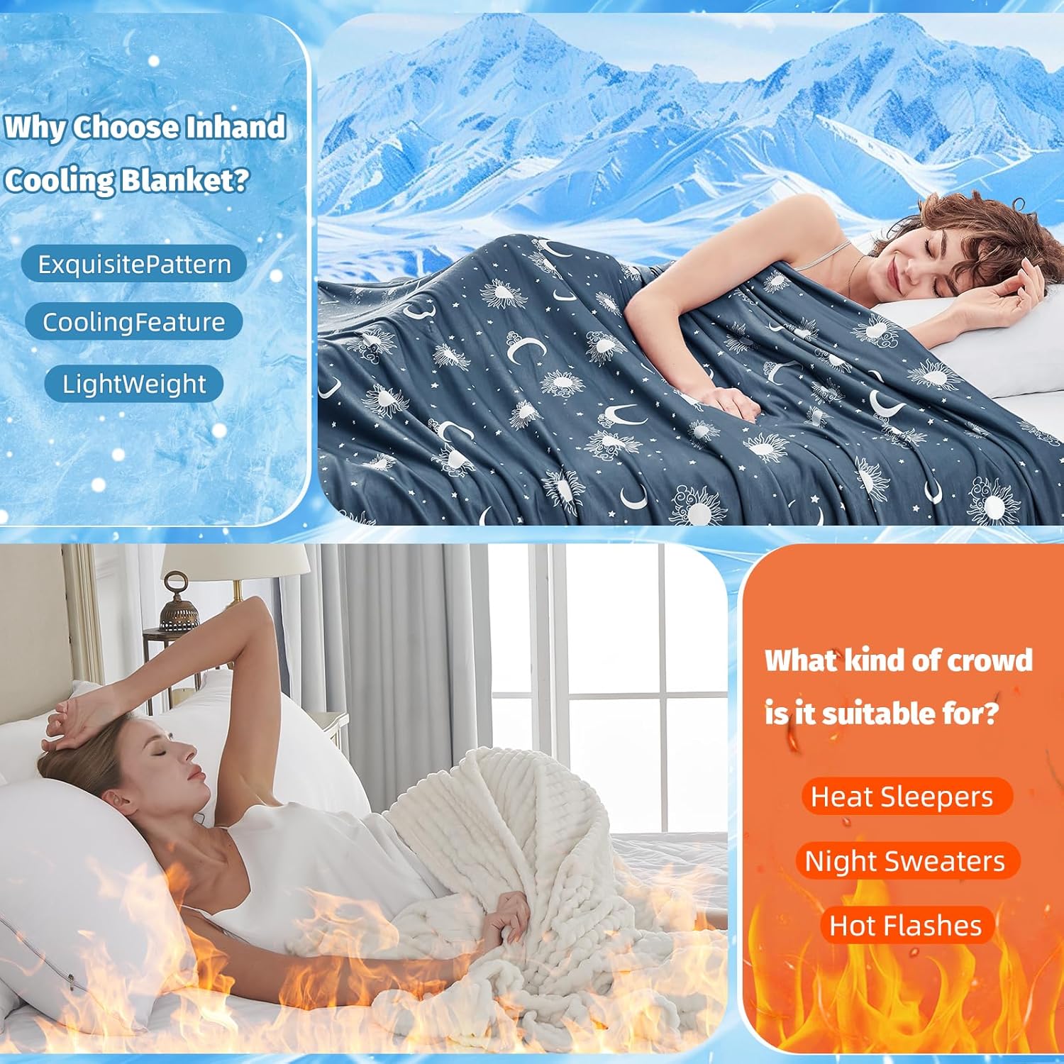 - 【COOLING BLANKETS FOR HOT SLEEPERS】 Many people sweat at night or during naps, resulting in an inability to get a good night's sleep, especially in the hot summer nights. The cooling blanket is made of upgraded cooling fiber, designed for restless nights, it absorbs your body heat well and feels cool to the touchand fit your skin, keeping it breathable and dry.Perfect bedding Hot Sleepers Must Haves.