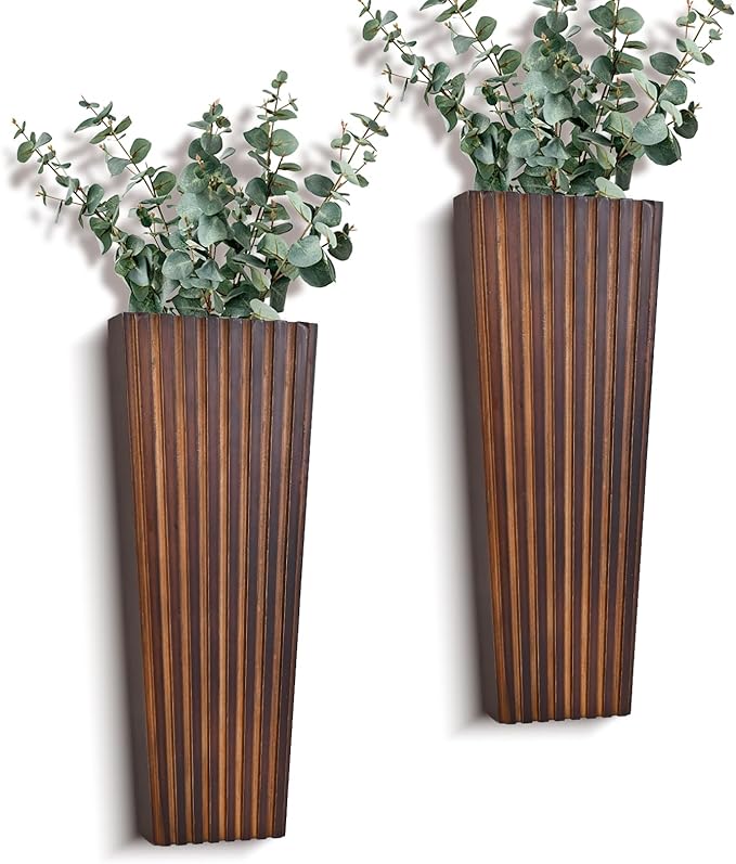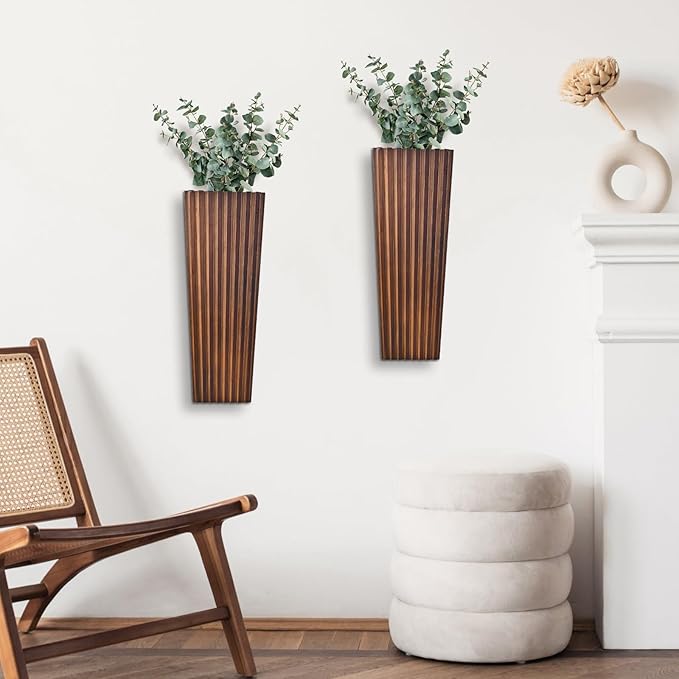 - VERSATILE DESIGN: Set of 2 wooden wall planters perfect for displaying dried flowers, artificial plants, and decorative greenery in a modern farmhouse or mid century modern style(Flowers not included)