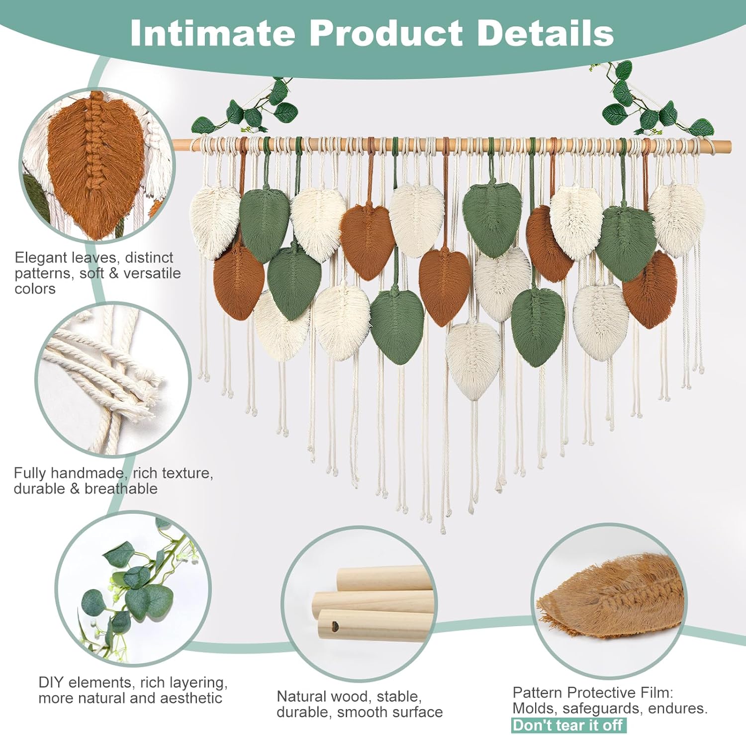 - 【Complete Hanging Kit】 Includes: pre-woven cotton panel, wooden suspension rod, decorative beads & all mounting hardware. Ready for immediate display - no tools required.