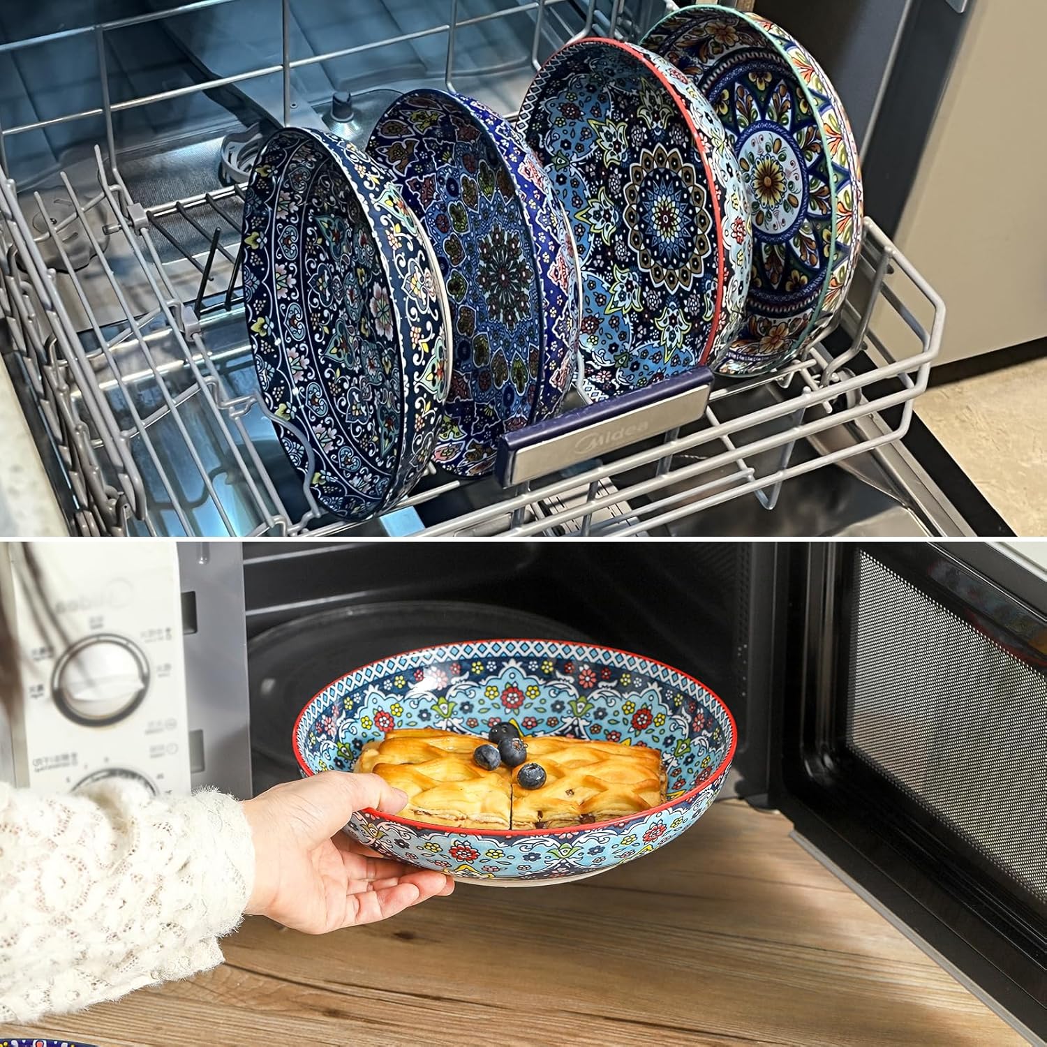- Stunning Bohemian Design – Stylish bohemian pasta bowls showcase hand-painted designs in bold, joyful colors, transforming every meal into a lively experience. The ceramic bowls set feature intricate Bohemian patterns, perfect for adding a free-spirited, artistic touch to modern dining.