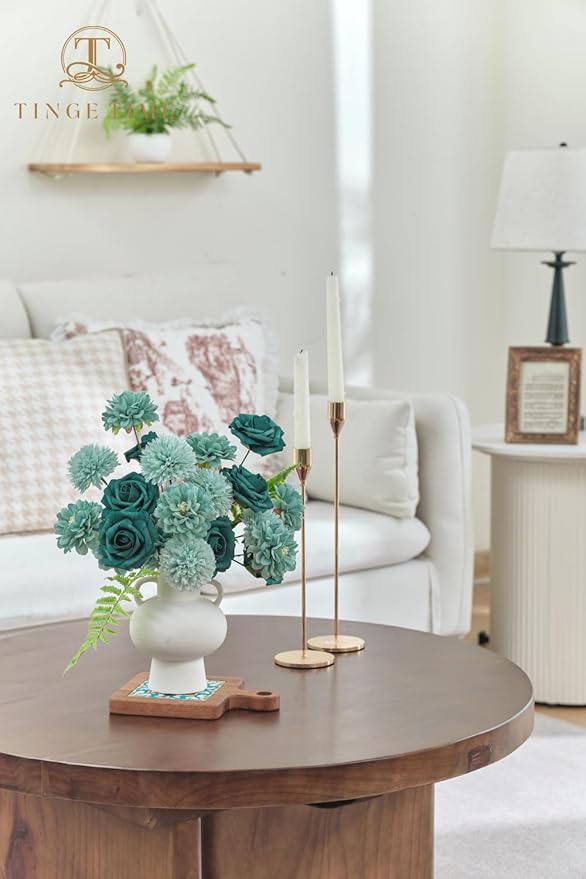 - 【MATERIAL THAT LASTS】TINGE TIME peacock blue artificial flowers are meticulously crafted from premium PE foam and silk flowers, offering the realistic beauty and soft texture of fresh flowers without the hassle of maintenance.