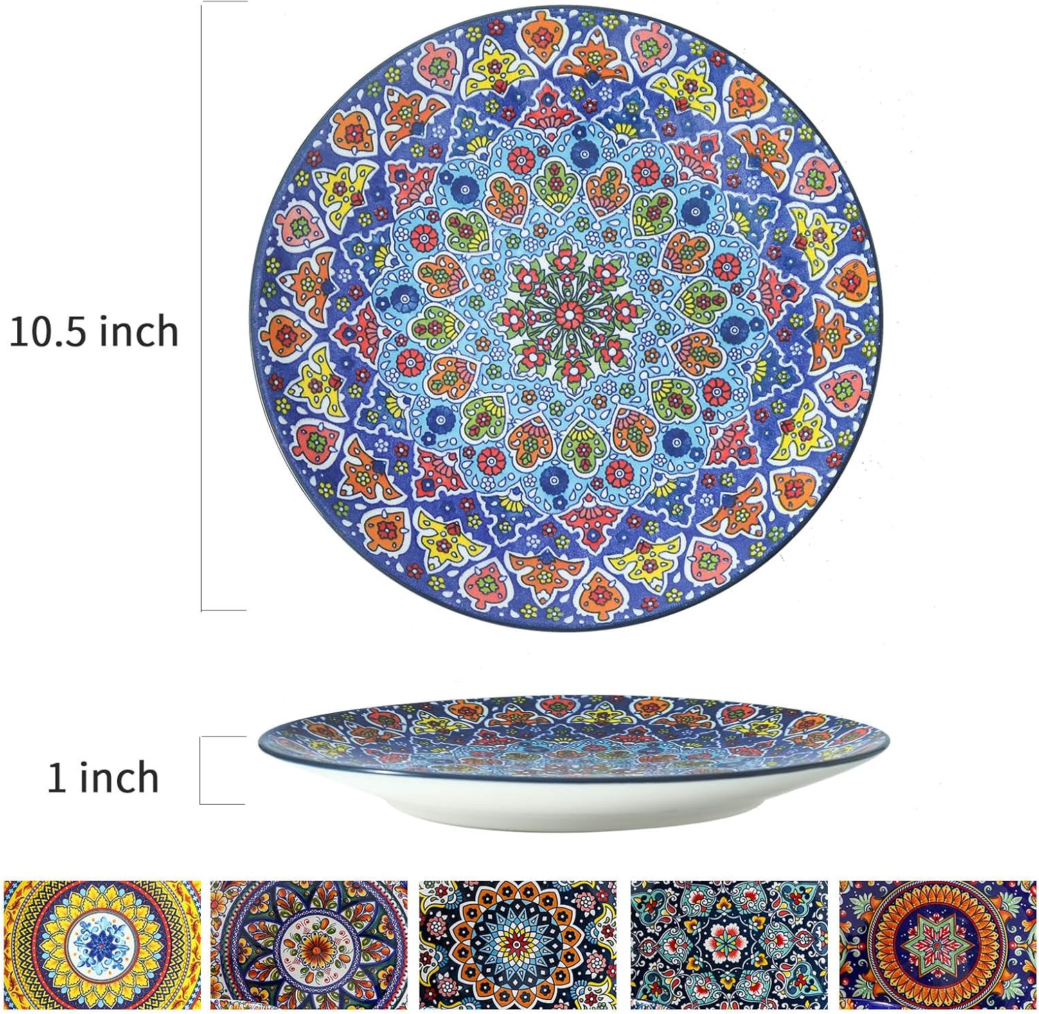 - Stunning Bohemian Design – Each plate in this boho dinner plate set of 6 showcases a mesmerizing, handcrafted bohemian pattern, blending vibrant colors and intricate floral motifs. Perfect for vintage-inspired tableware, these decorative ceramic plates elevate everyday meals into artistic experiences.