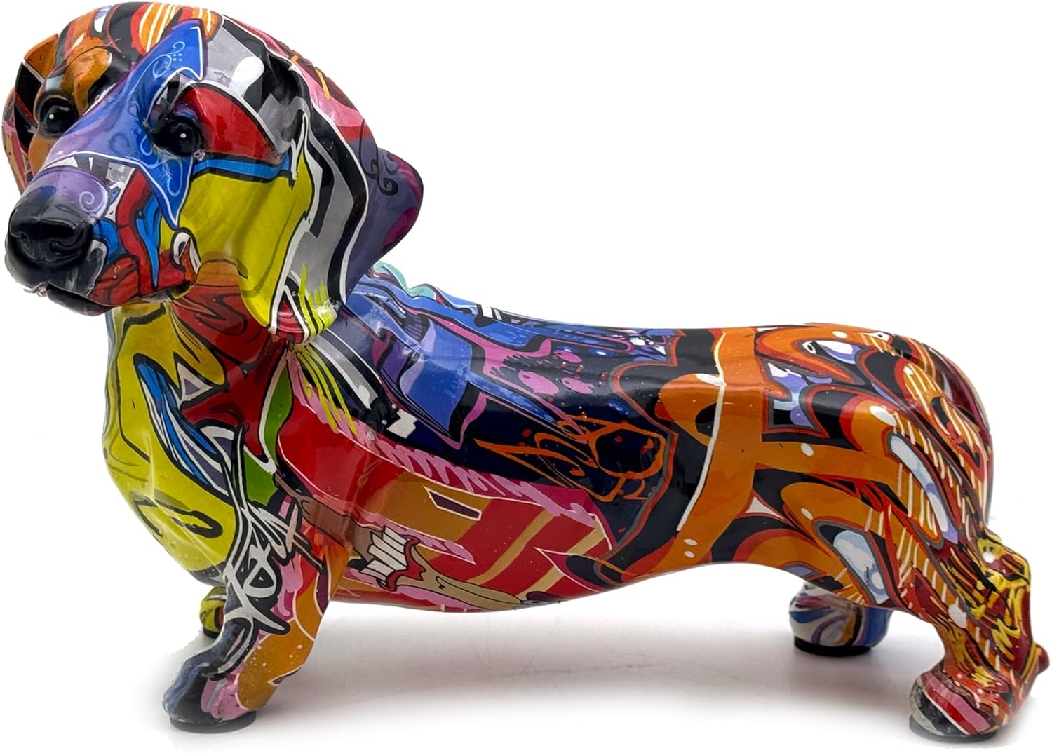 - ARTISTIC DESIGN: Vibrant and eye-catching Dachshund sculpture featuring playful colors and modern artistic styling perfect for home decoration.Dimensions approximately L9.6" x W5.1" x H6.3".