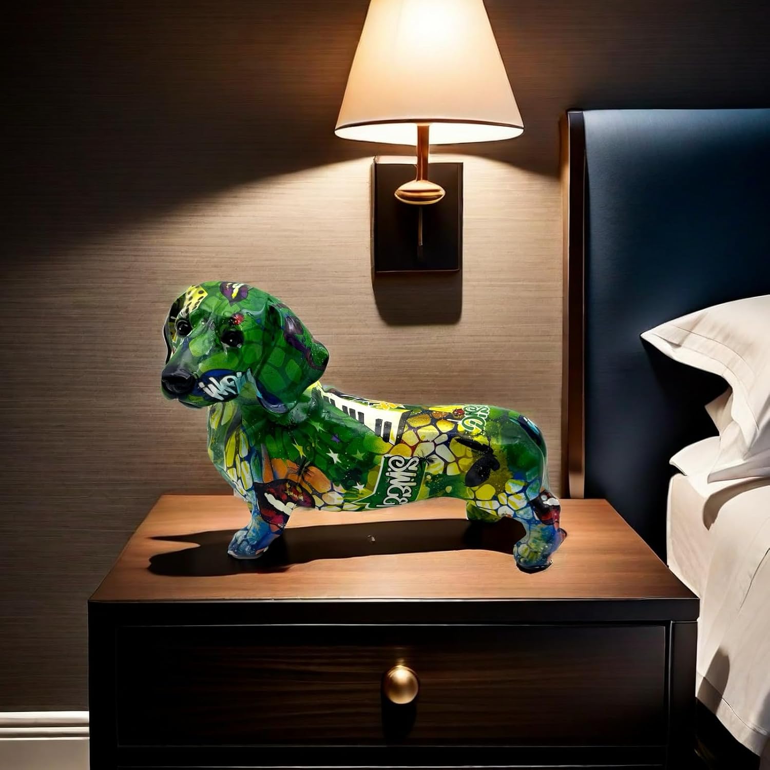 - ARTISTIC DESIGN: Vibrant and eye-catching Dachshund sculpture featuring playful colors and modern artistic styling perfect for home decoration.Dimensions approximately L9.6" x W5.1" x H6.3".