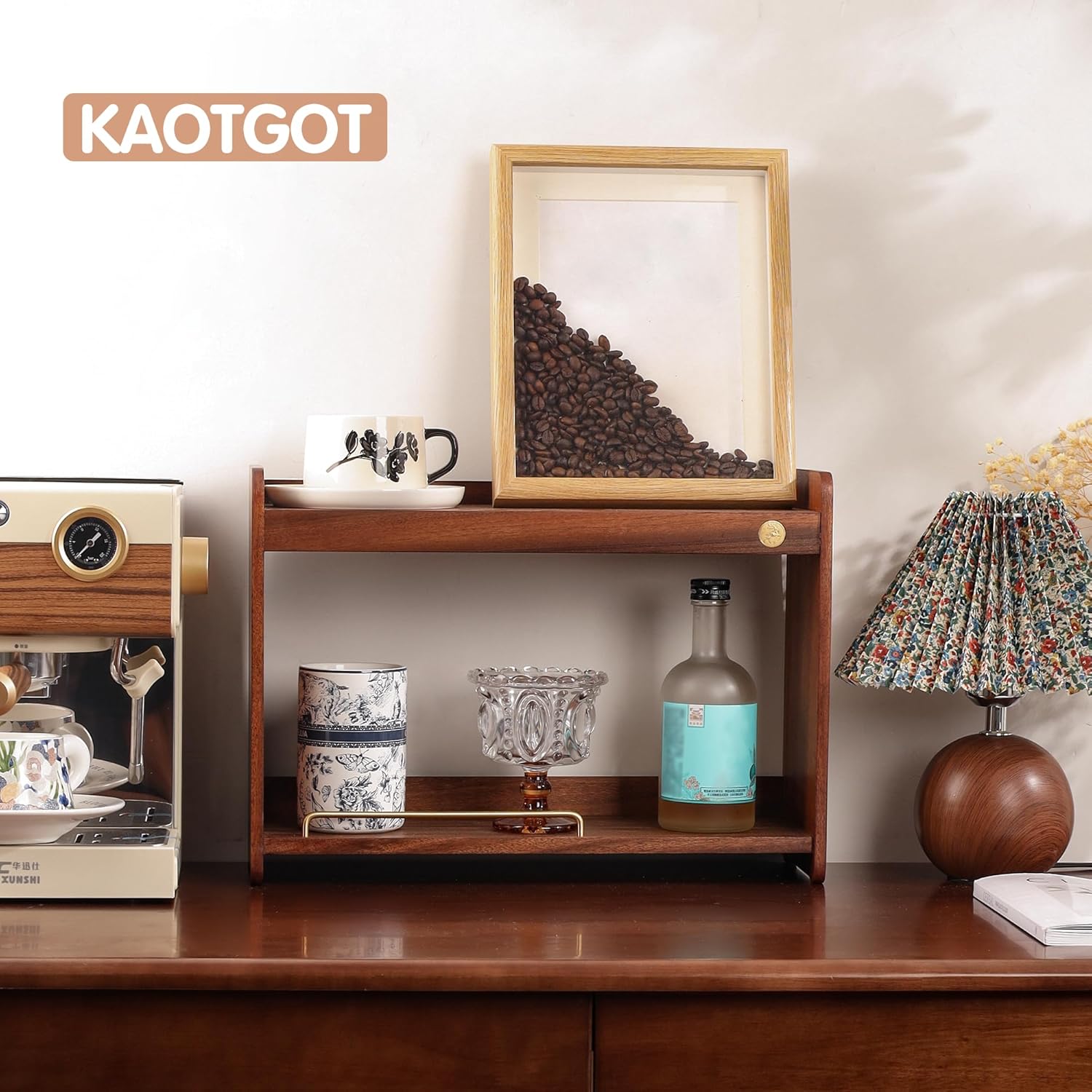 Coffee Mug Holder Wooden Cup Rack Mug Display Shelf Coffee Cup Holder for Countertop With 4 Mug Cups 2 Tier Wood Coffee Mugs Holder for Kitchen Coffee Cup Storage