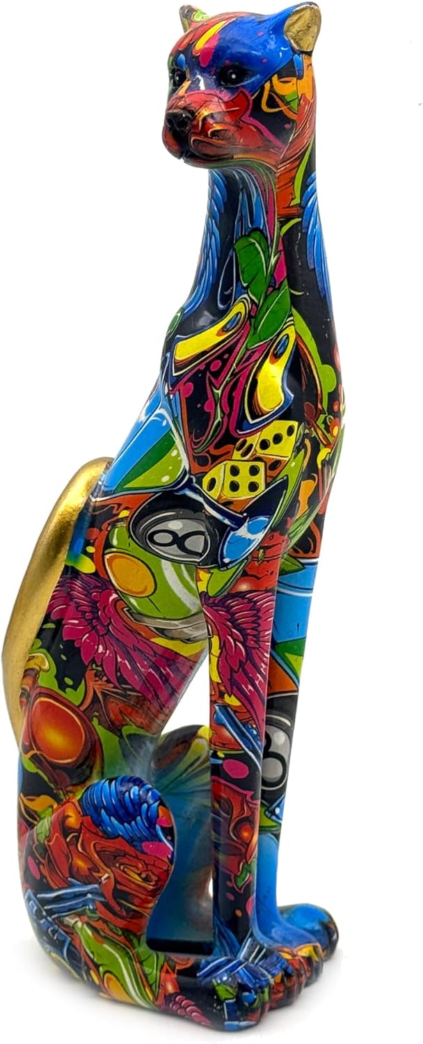 Colorful Leopard Statue Art Figurine Sculpture Collectible Gifts for Leopard Lover Office Home Decor Desk Accessories Decoration Garden Figurines Outdoor Decor (Color C)