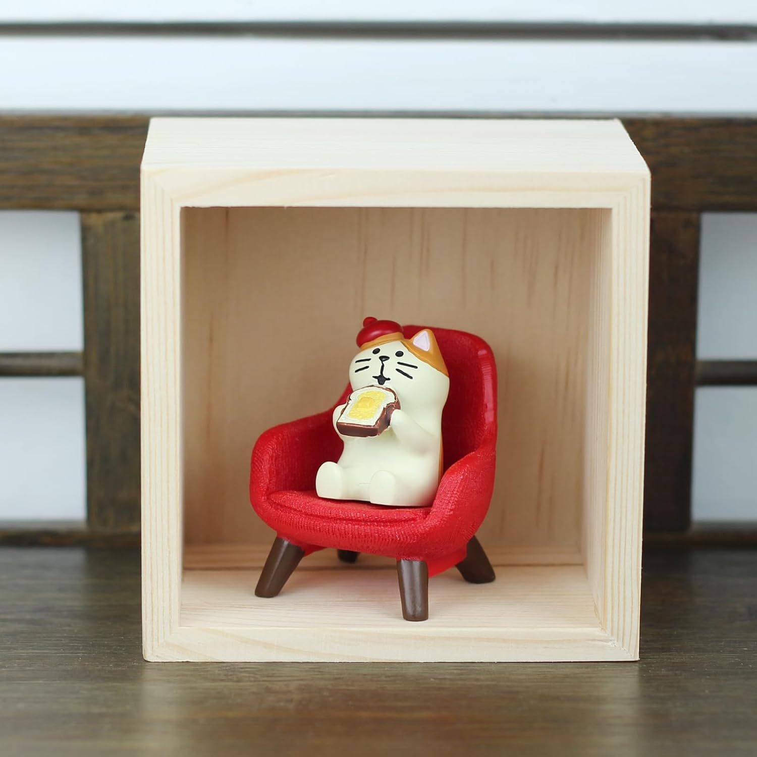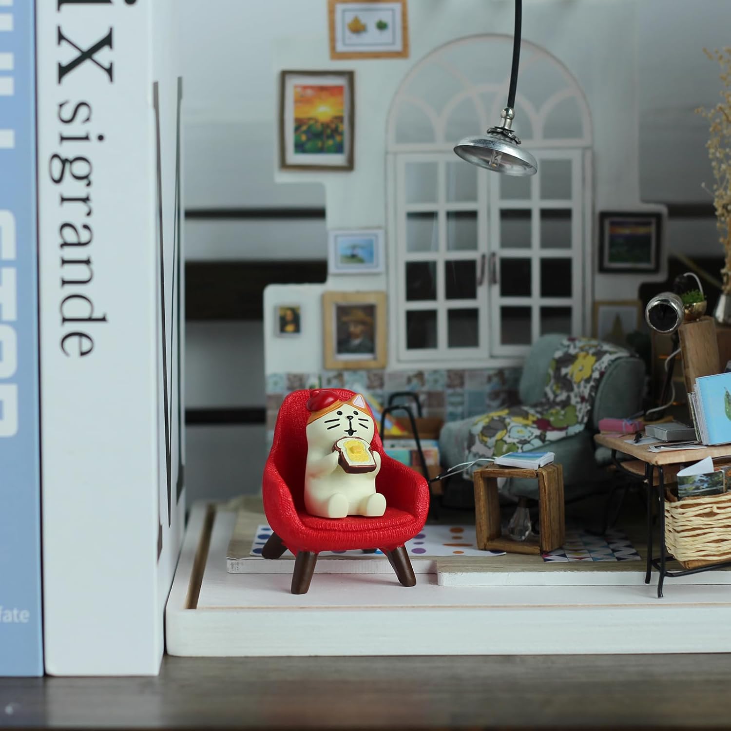 - Cute Mini Cat: Includes one small cat eating toast bread and one small sofa. You can place them on your desk, shelf, or office table
