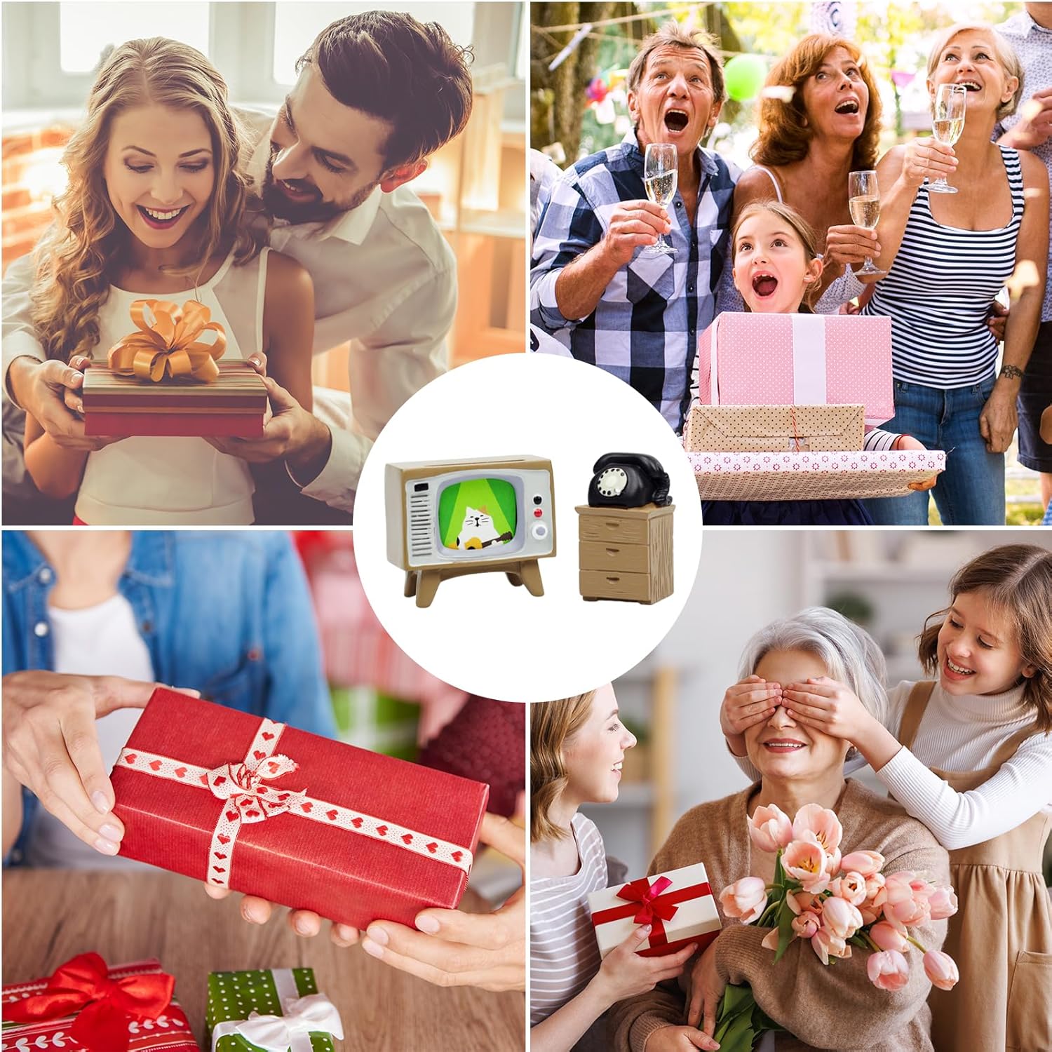 - Cute Desk Accessories: The dimensions of the TV are 1.7*0.8*1.5 inches, and the telephone cabinet measures 0.8*0.9*1.65 inches. This design adds charm and whimsy to your workspace
