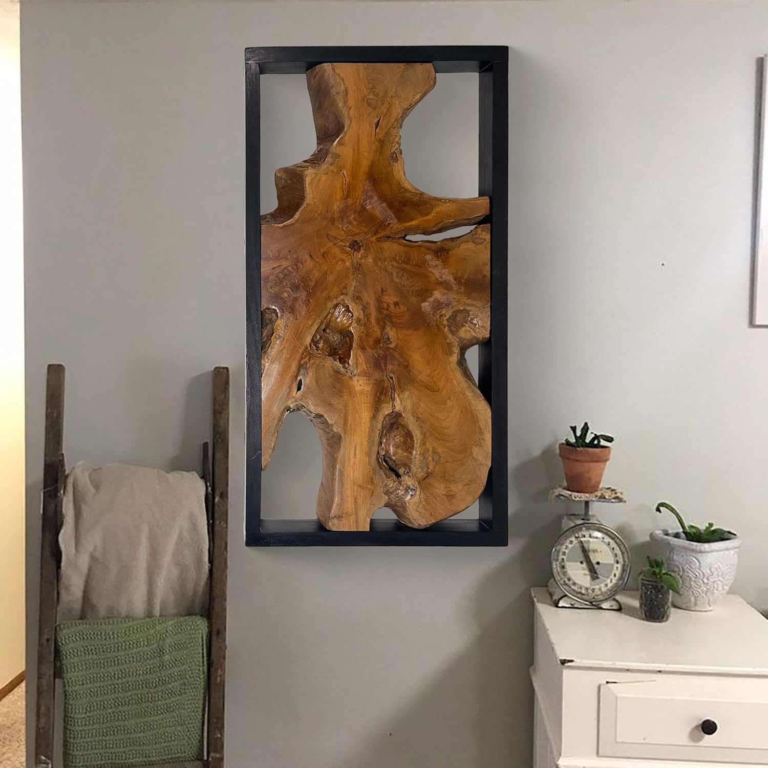 Greenage Teak Wall Decor 17"X31.5"X2.4" Farmhouse Rectangle Rustic Art Hanging Decoration for Home Living Room Bedroom Office