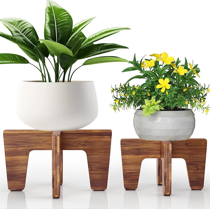 - 【Elevate Your Space with Natural Elegance】Designed to harmonize with contemporary interiors, these plant stands feature natural bamboo grains that adapt effortlessly to your décor style. Put a pot of your favorite plants, decorate your living room, dining room, bedroom, balcony, office etc. My plant stands are elevated to keep plants off the floor and provide them with better air quality and circulation so they look better. The plant stands are absolutely perfect for elevating your plant off the floor