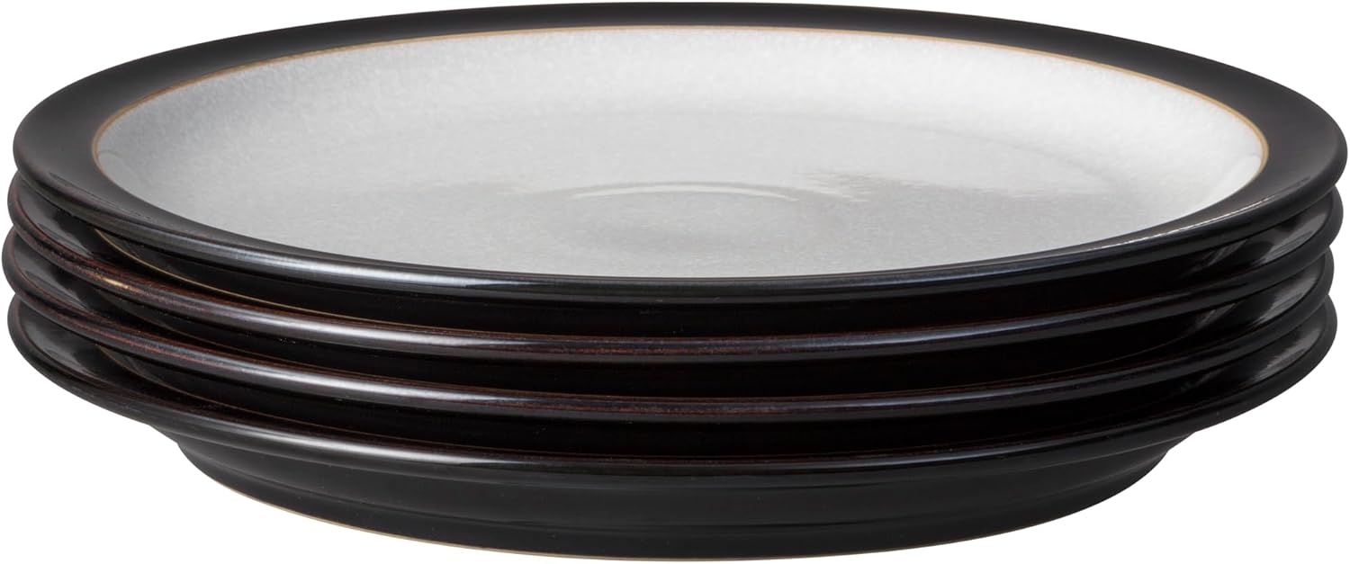 Denby - Elements Black Dinner Plates Set of 4 - Contemporary Design - Ceramic Stoneware Tableware - Dishwasher & Microwave Safe - Scratch Resistant - 10.4in Large Everyday Dinnerware Plates