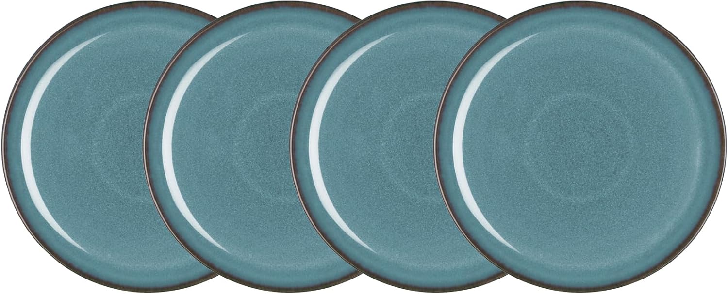 - SET OF 4 MEDIUM PLATES: This set contains 4 medium dinner plates (8.25in x 8.25in x 1in). This stylish range features a tranquil blue glaze in a modern coupe design. These medium plates can be used as a main, side, lunch or salad plate for a wide spectrum of dishes and cuisines.