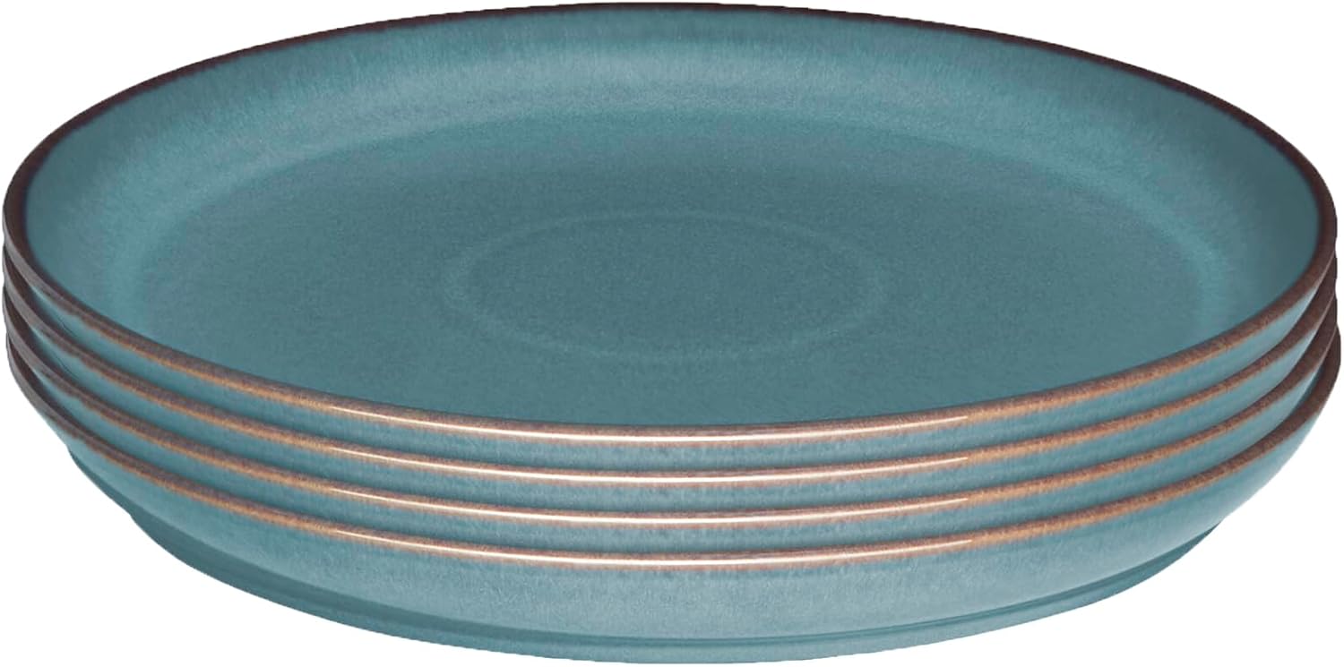 Denby - Azure Coupe Medium Plates Set of 4-8.25in Dinner, Lunch, Salad Plates For Everyday Use - Blue Ceramic Stoneware Tableware - Dishwasher & Microwave Safe - Scratch & Chip Resistant