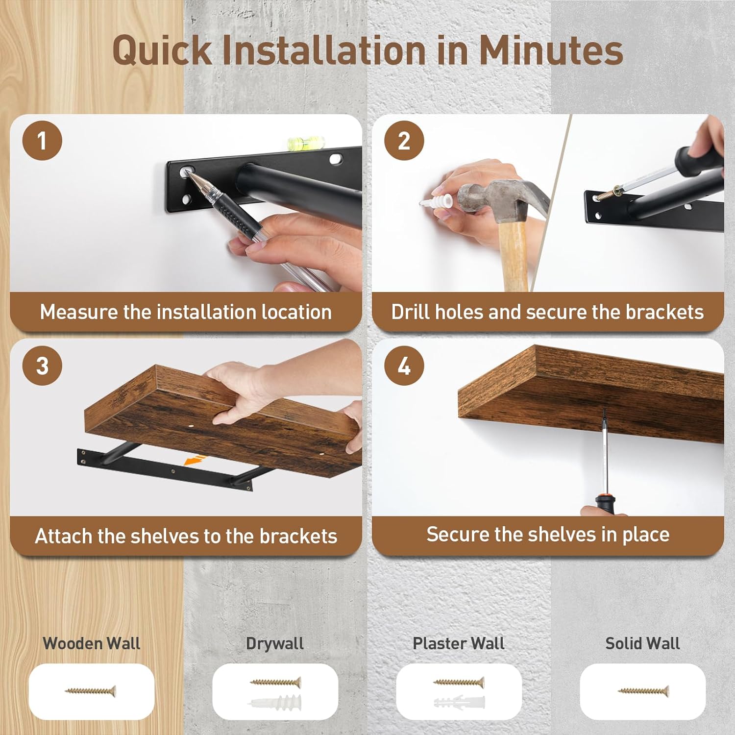 - Quick Assembly: With a simple structure and complete parts, installation can be completed in just 4 steps. Two types of expansion screws are included for various walls, allowing you to complete the assemble in no time to enjoy a tidy home right away