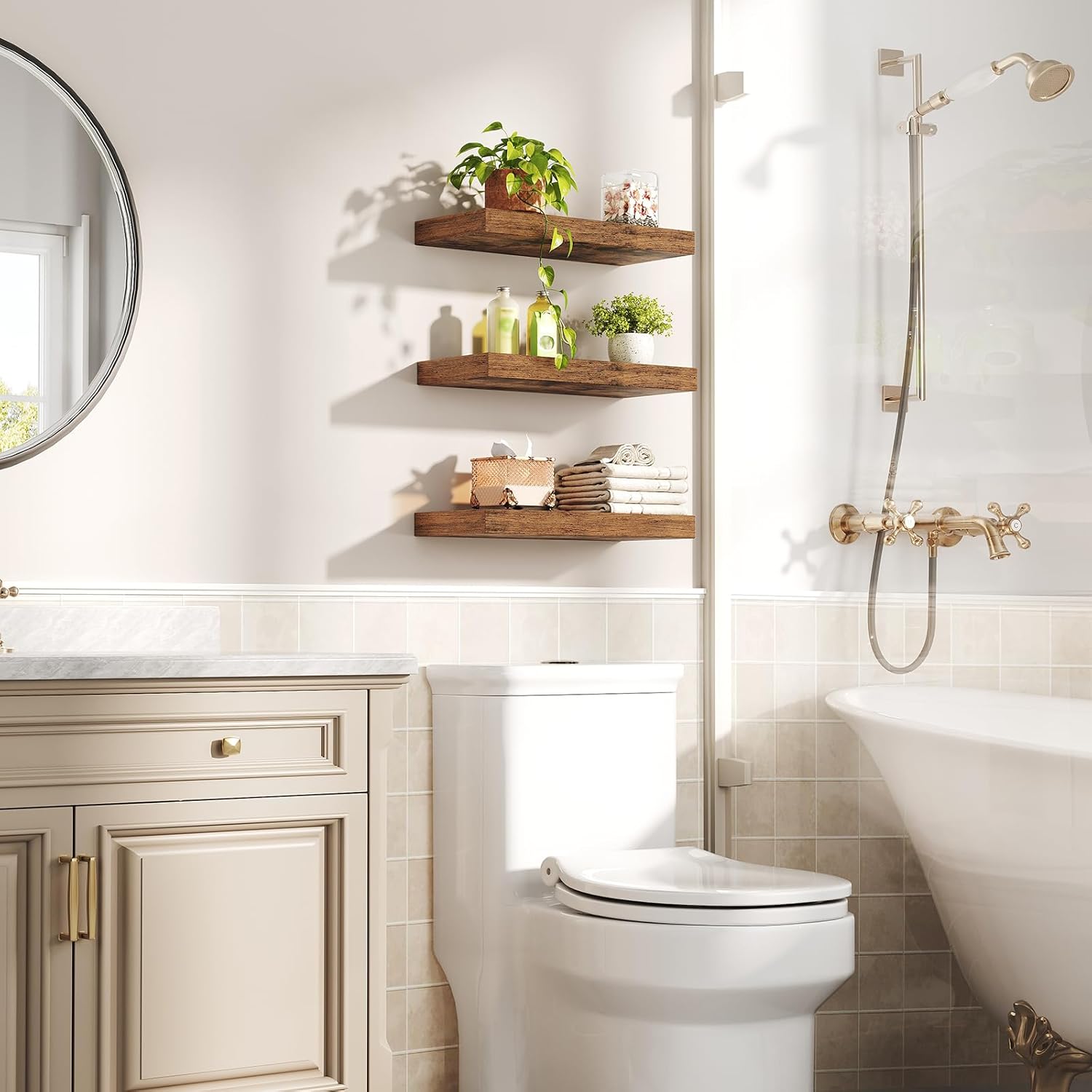 - 3-Piece Set: This set of 3 hanging shelves allows for horizontal, vertical, and staggered arrangements. Customize your design according to your space or personal preferences, ideal for bathrooms, bedrooms, living rooms, and above toilets