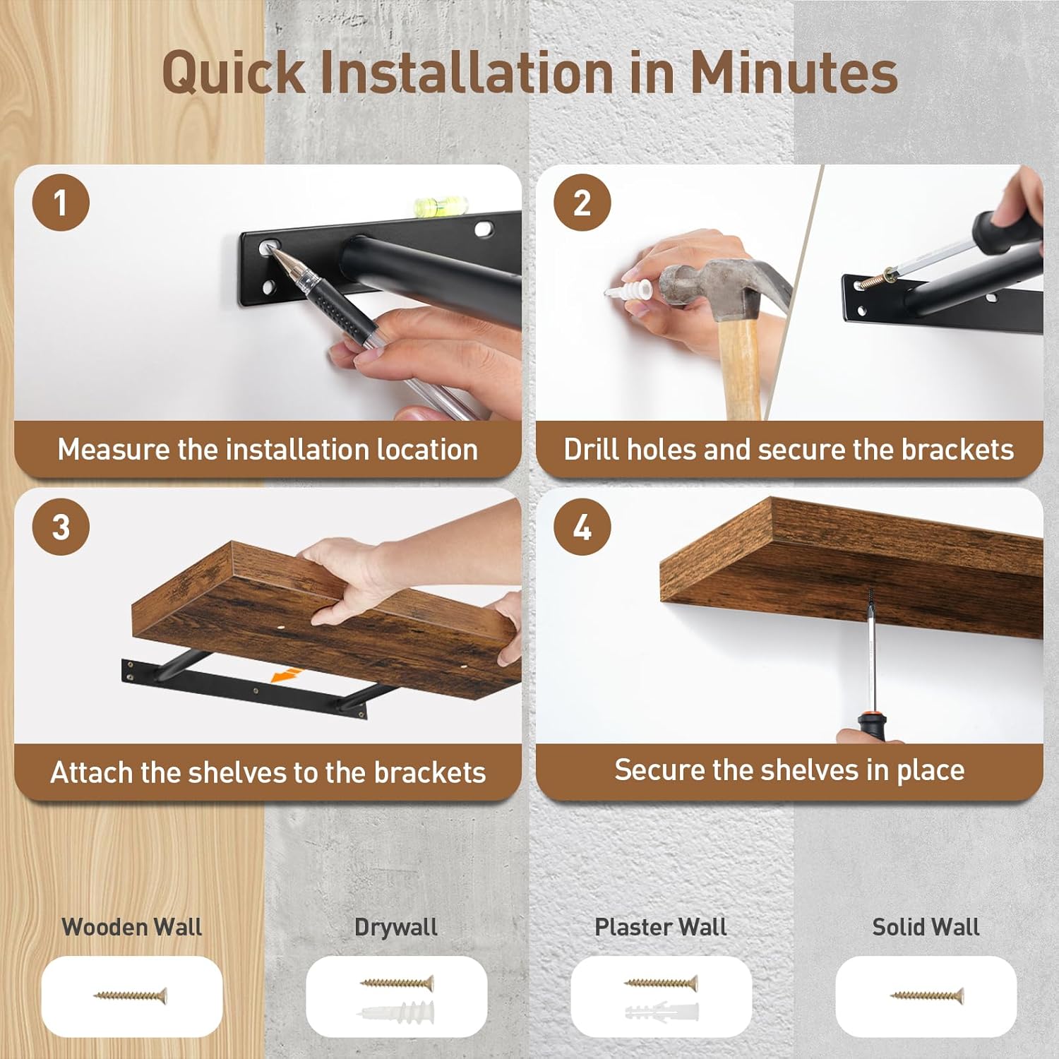 - Quick Assembly: With a simple structure and complete parts, installation can be completed in just 4 steps. Two types of expansion screws are included for various walls, allowing you to complete the assemble in no time to enjoy a tidy home right away