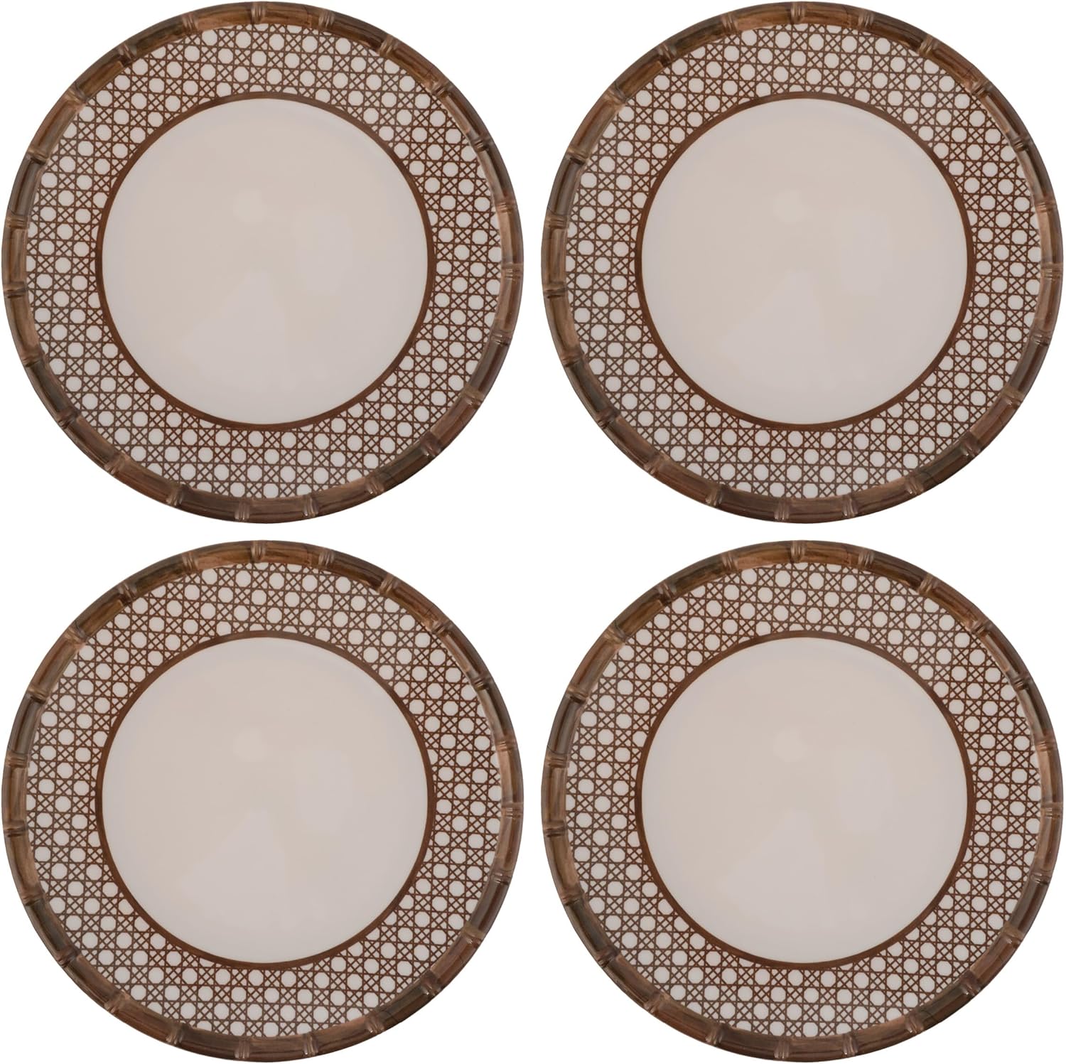 Karma, 10.75 inches Melamine Dinner Plates Set of 4, Reusable Dishwasher Safe Plates for Outdoor and Indoor, Bamboo
