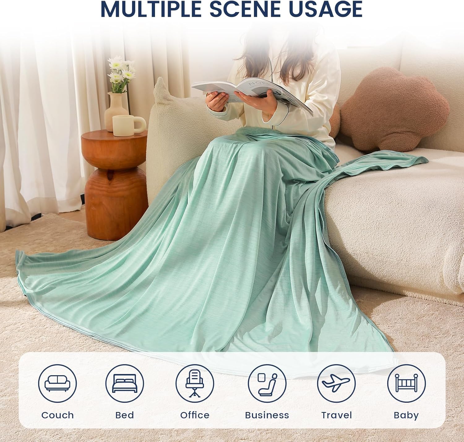 - LIGHTWEIGHT TO CARRY: Soft fabric make the blanket Lighter. Perfect for bed, sofa, couch, chair, car, train, airplane, cinema, park, beach even office or travel. The feature of blanket is breathable, wicking , moisture and anti-static. NOTE: If you don't feel cool after covering it for a long time, you can shake the blanket
