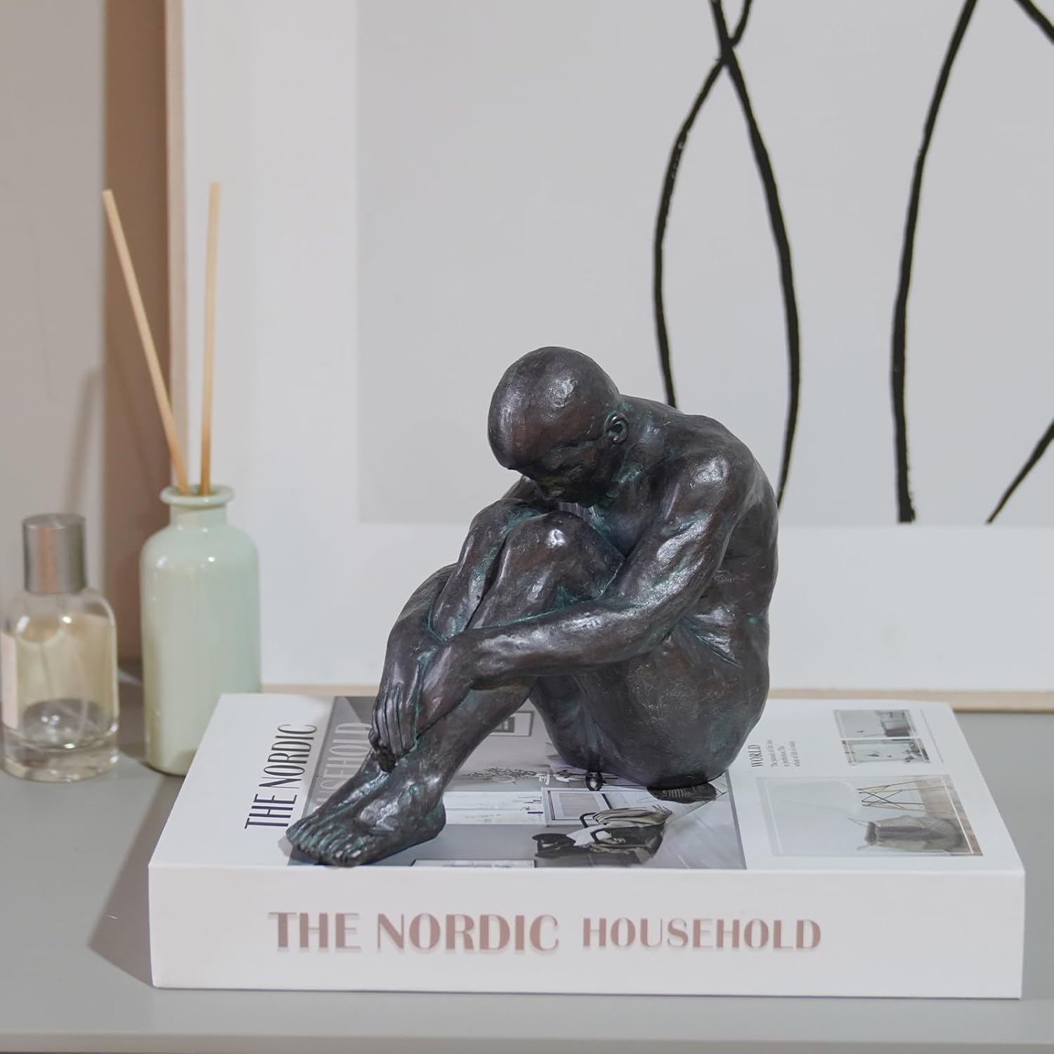 - BOOKSHELF DECORATIVE OBJECTS: Abstract modern sitting man statue made of resin, strong structure and high quality, professional casting, meticulous, no odour.