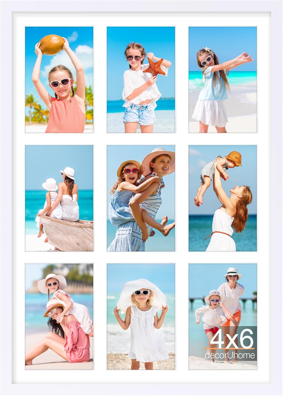 decorUhome 14x20 Picture Frames Collage Wall Decor, Display 9Pcs 4x6 Photos with Mat or 1Pcs 14x20 Unmatted, 9 4x6 Collage Picture Frames for Wall Mounting, White