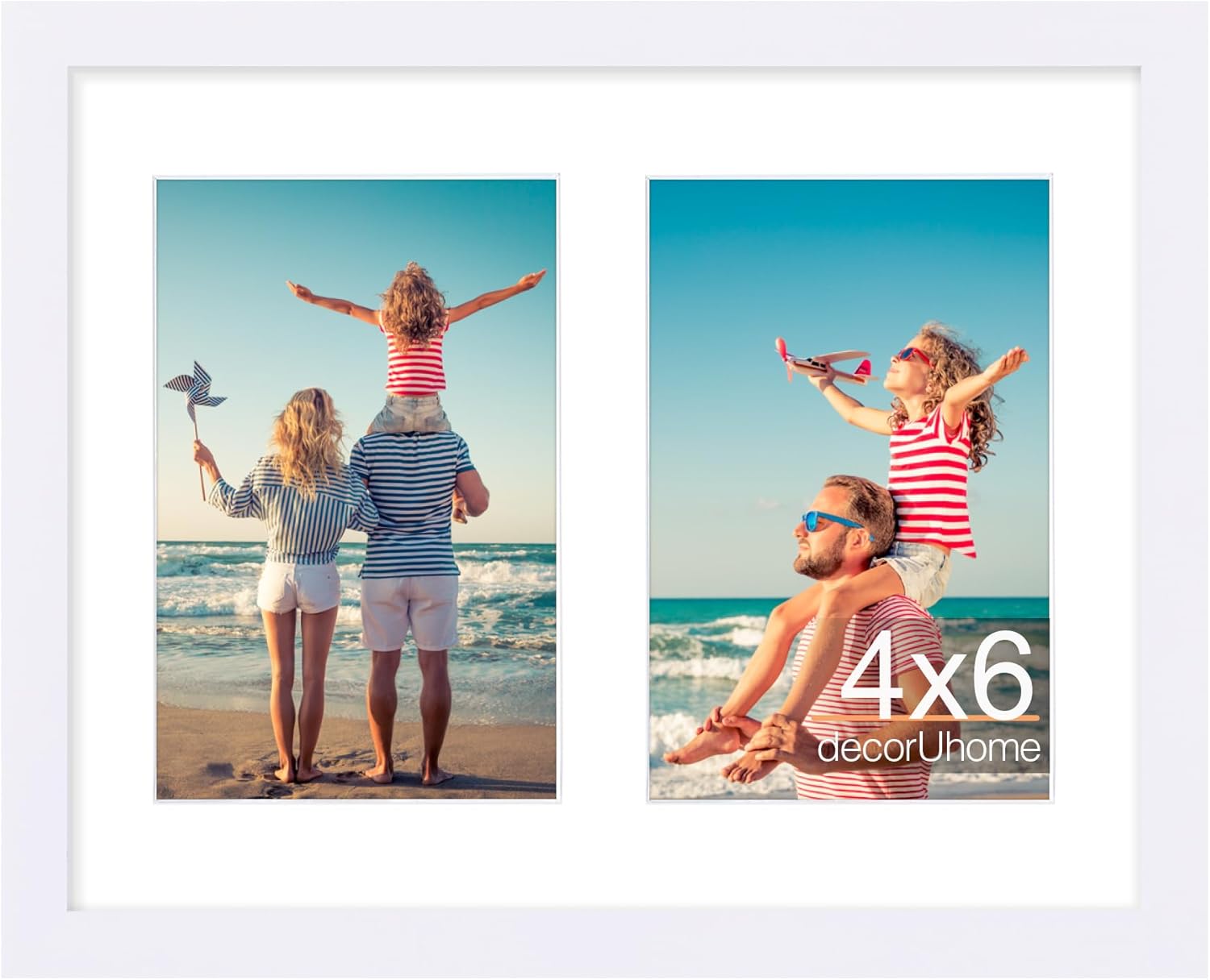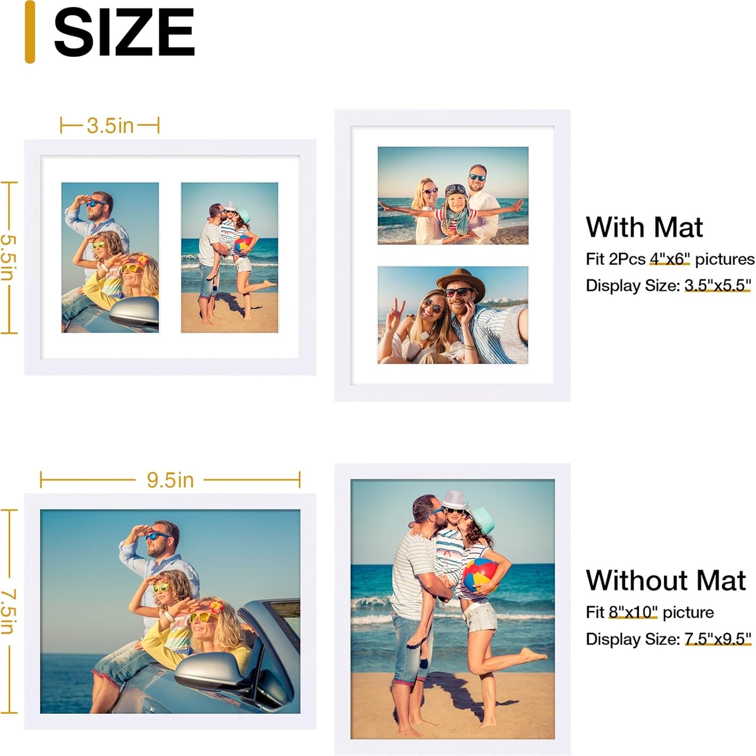 decorUhome 8x10 Picture Frames Collage Wall Decor, Display 2Pcs 4x6 Photos with Mat or 1Pcs 8x10 Unmatted, 2 4x6 Collage Picture Frames for Wall Mounting, White