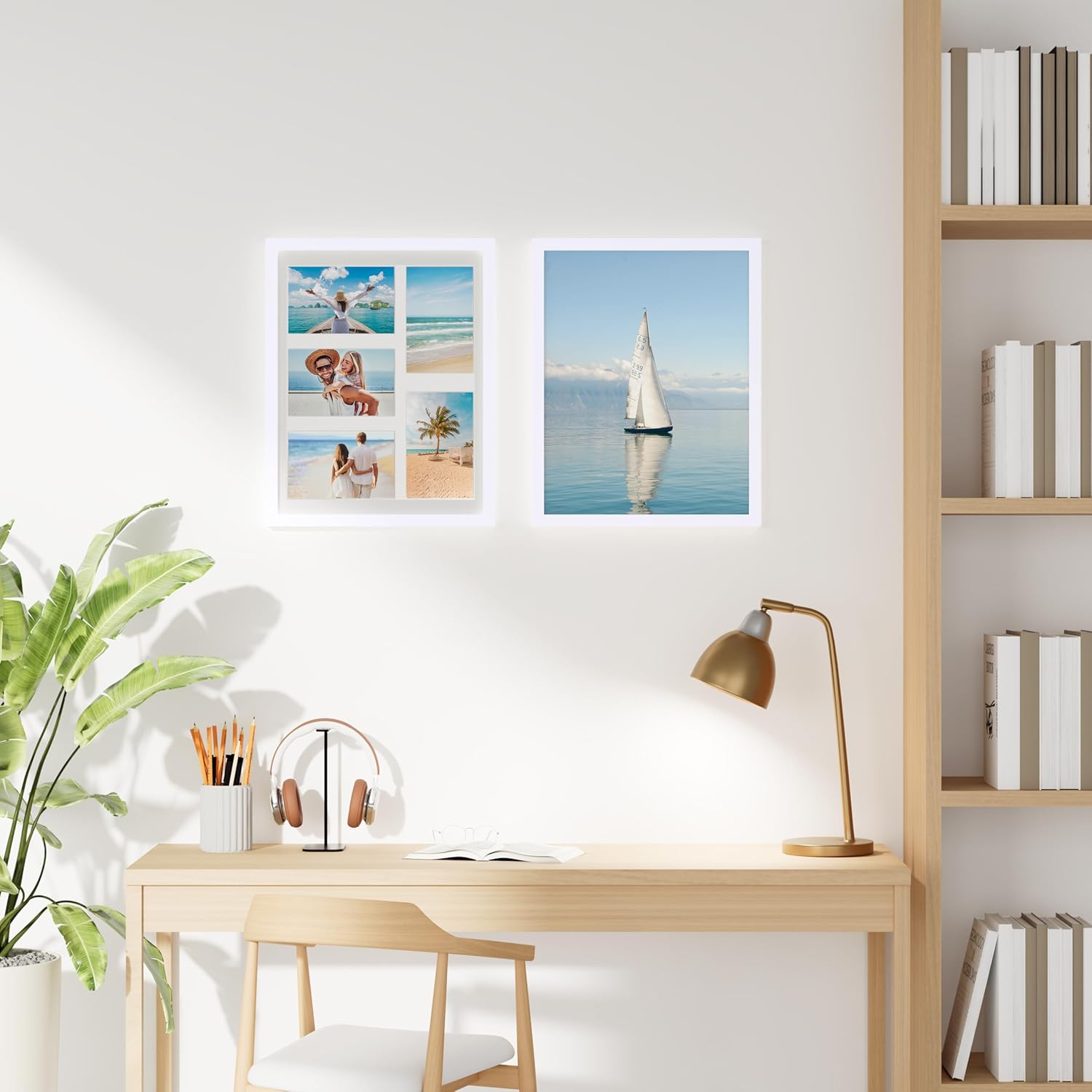 decorUhome 11x14 Picture Frames Collage Wall Decor, Display 5Pcs 4x6 Photos with Mat or 1Pcs 11x14 Unmatted, 5 4x6 Collage Picture Frames for Wall Mounting, White