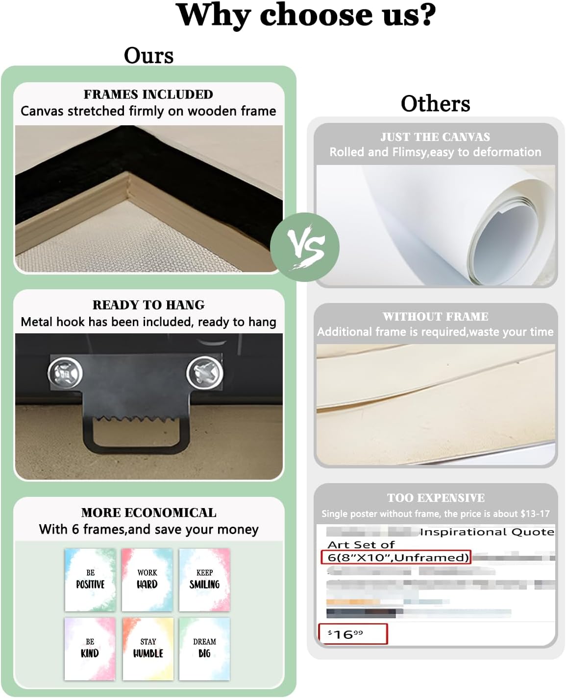 - Frames Included: The wall art has been hand-stretched on wooden frames and ensure the four corners are perfectly folded, ready to hang.