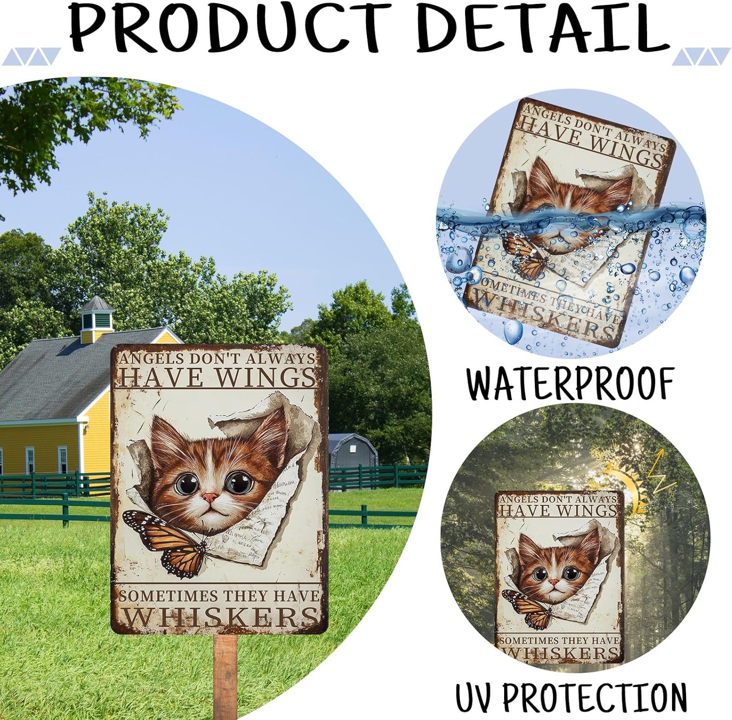 Funny Cat Metal Signs Vintage Angels Don't Always Have Wings Sometimes They Have Whiskers Tin Sign Retro Wall Decor for Home Living Room Garden Yard 8×12 Inch