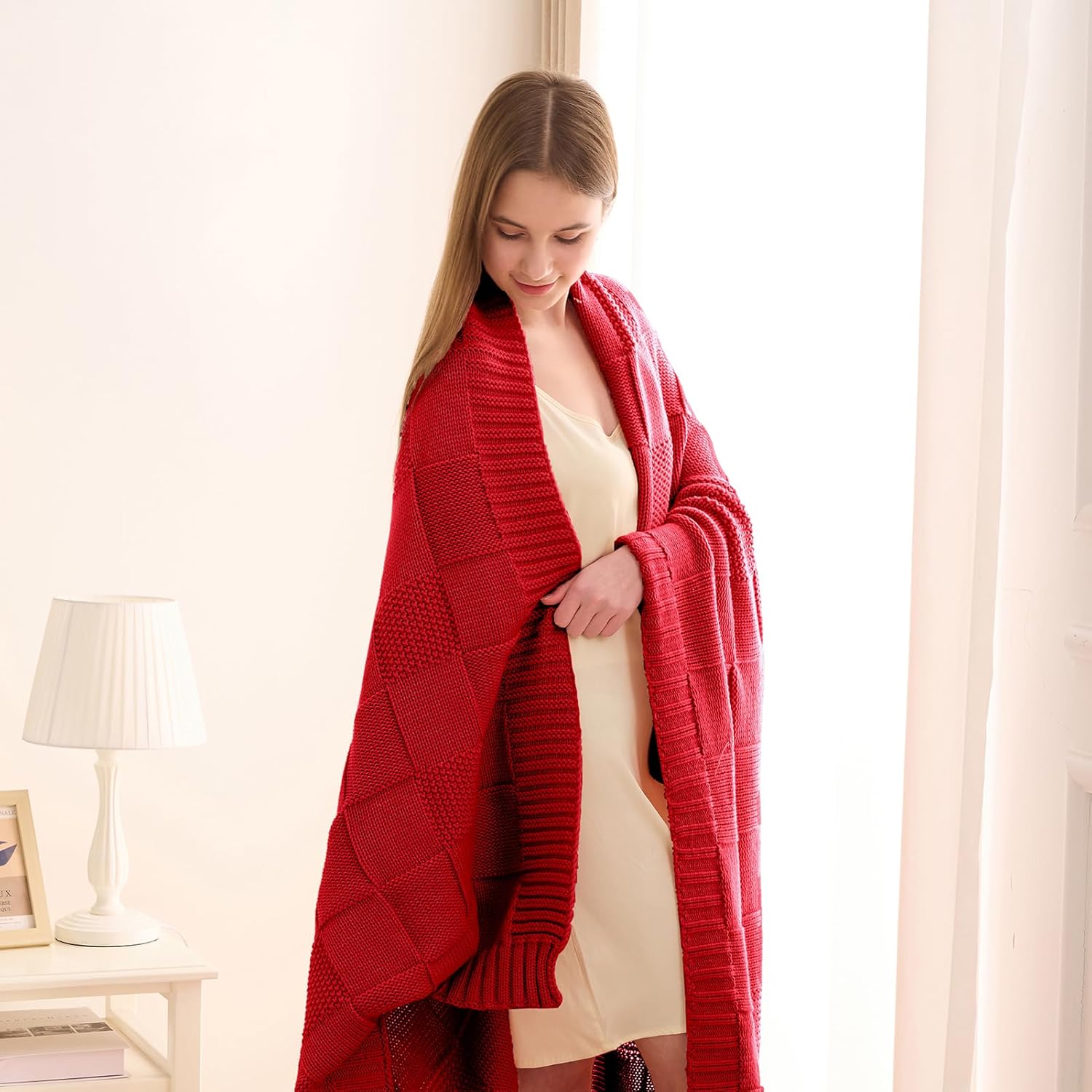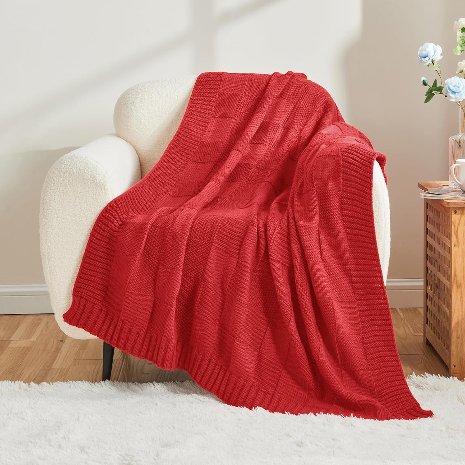 CozeCube Check Knit Throw Blanket, Christmas Red Checkered Bedroom Blanket for Couch, Soft Cozy Warm Knitted Blanket for Bed Sofa Living Room, Decorative Spring Fall Throw Blanket, 60"X80"