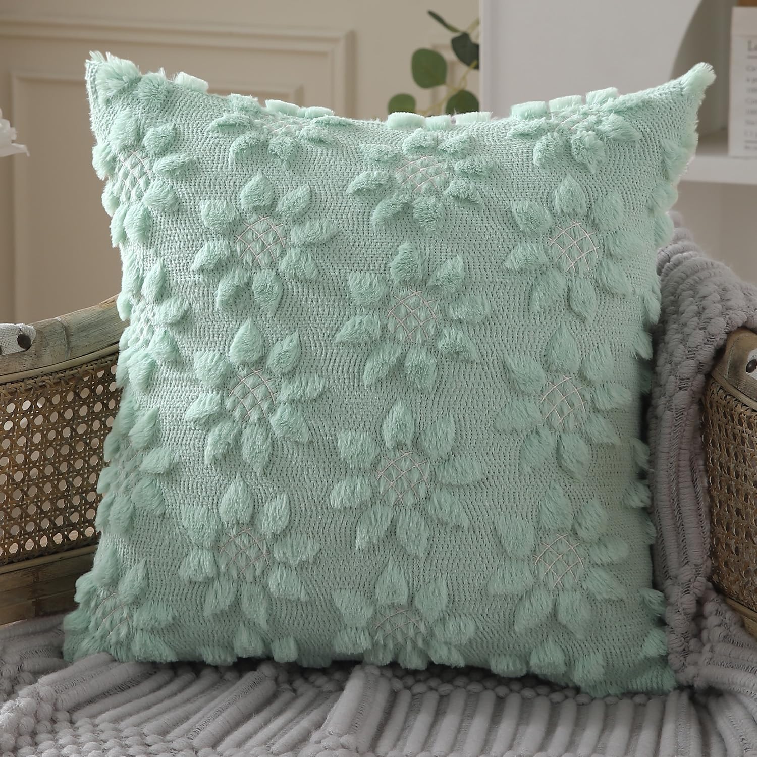 DFXSZ Spring Summer Pillow Covers 16x16 inch Set of 2 Farmhouse Decor White Flower Heart Sunflower Green Soft Plush Faux Fur Jacquard Throw Pillows for Sofa Holiday Spring Home Decor PTK024F16
