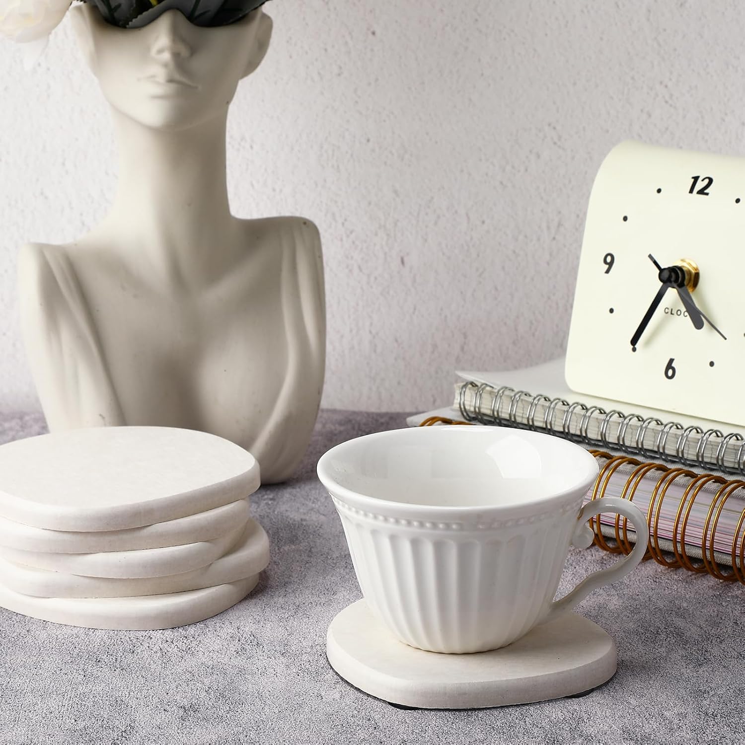 Diatomaceous Earth Coaster ,Set of 6,Unique White Absorbent Coasters for Drinks,Modern Aesthetic Instant Dry Stone Drink Coasters(6,White)