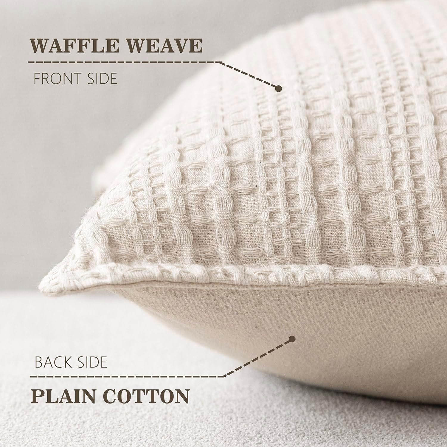 Foindtower Set of 2 Decorative Cotton Waffle Weave Throw Pillow Covers Euro Shams Cushion Covers Accent European Pillowcase for Bed Couch Sofa Bedroom Living Room Home Decor 26×26 Inch Natural Ivory